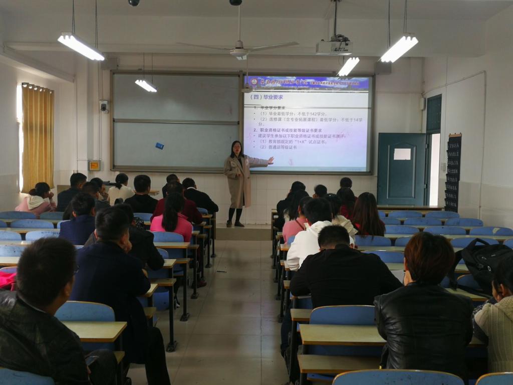 本网讯(经贸管理学院 张锐)为做好2019级高职社会扩招新生入学教育工作,帮助新生更好地了解所学专业和课程,10月26日下午经贸管理学院分别组织电子商务、市场营销、物流管理和酒店管理4个专业的新生接受入学专业教育。各专业教育活动由专业带头人(负责人)主持,各专业团队教师及相关授课教师出席了活动。
