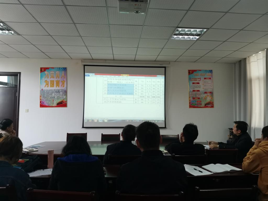 本网讯 11月13日下午,汽车技术学院在知行楼416会议室对2020年拟申报的“城市轨道交通车辆技术专业”、“汽车智能技术”两个新专业进行了研讨。参加研讨会的有汽车技术学院院长黄道业、副院长姜继文、汽车制造与服务教研室主任李本祥、汽车技术实训中心主任刘领及相关专业带头人、骨干教师。