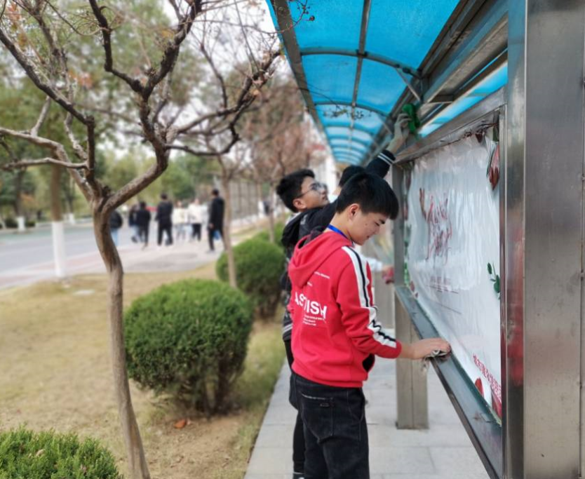 本次活动主要任务是清洁校园宣传栏,由会长束丛鑫带队,会员们自愿参加。会员们自备劳动工具,集合后很快进入工作状态,寒冷的天气抵挡不住大家满怀劳动的热情,经过全体会员们的辛勤劳动,宣传栏变得干干净净,清洁明亮。