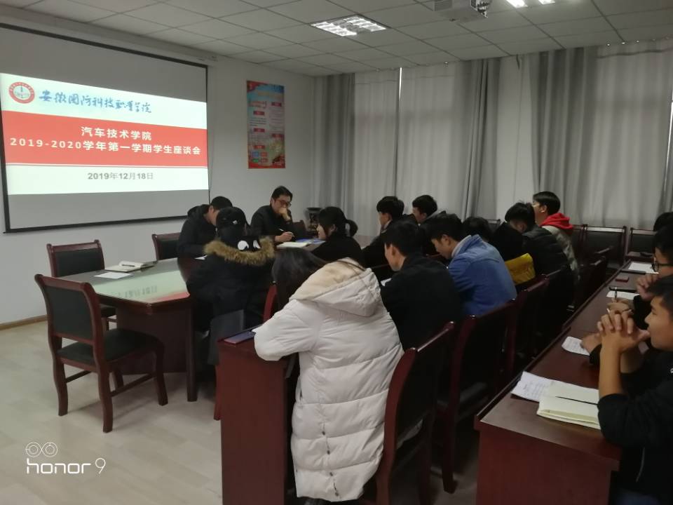 本网讯(汽车技术学院 黄世超)为更好的了解学生学习和生活,更好的倾听学生心声,12月19日下午,汽车技术学院在416会议室召开2019-2020学年第一学期学生座谈会,学院副书记余桂刚老师、学院副院长姜继文老师、辅导员黄世超老师、2018级和2019级学生干部代表出席了本次座谈会,会议由姜继文老师主持。