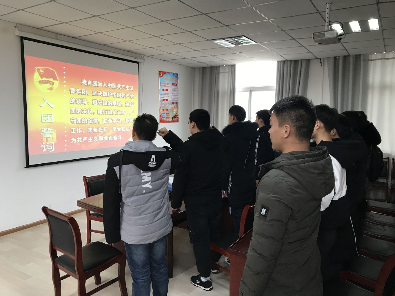 本网讯(汽车技术学院 戴柳)为充分贯彻落实《高校共青团改革实施方案》和学校从严治团工作的要求,12月25日中午11:30,汽车技术学院团总支在知行楼416会议室举行2019年新团员入团宣誓和主题团课活动,仪式由汽车技术学院辅导员朱其阳主持,团总支学生干部及2019年度新发展的13名团员参加本次活动。