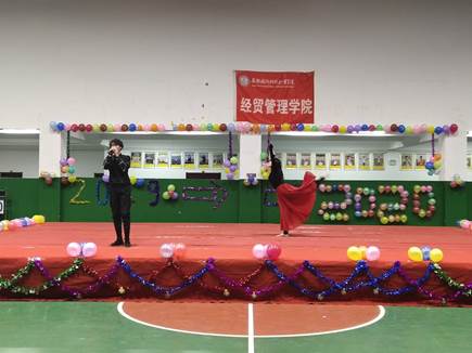 本网讯 2019年12月31日晚,经贸管理学院在体育馆一楼举行元旦联欢会。团总支书记付玉梅以及校院两级学生会负责人应邀参加活动,各班学生代表参与现场观演。
