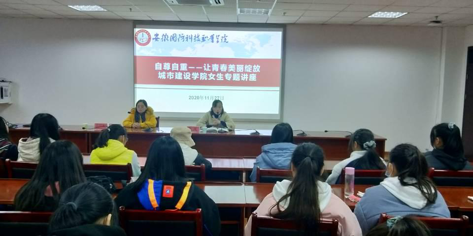 本网讯(城市建设学院 康垚)为做好城市建设学院的女生安全工作,增强女生的安全意识、引导女生树立正确的爱情观,城市建设学院于2020年11月27日下午在秉心楼902开展了城市建设学院女生专题讲座。本次讲座由城市建设学院团总支学生会女生部主办、团总支书记张凤主持、辅导员康垚主讲,大一与大二全体女生参加了此次讲座。