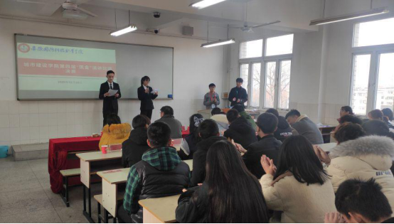 本网讯(城市建设学院 张凤)为推进学院“一院一品”建设,促使学生树立正确的专业目标,帮助学生规划好自己职业生涯,让学生树立正确的道德观、价值观、人生观,落实学分制管理办法,实现人才培养目标,2020年12月25日下午,城市建设学院举行“职业与理想”为主题的专业理想演讲比赛。城市建设学院党总支副书记叶启衡,团总支书记张凤,辅导员罗丞筠、康垚以及团总支学生会主席团成员应邀担任评委。