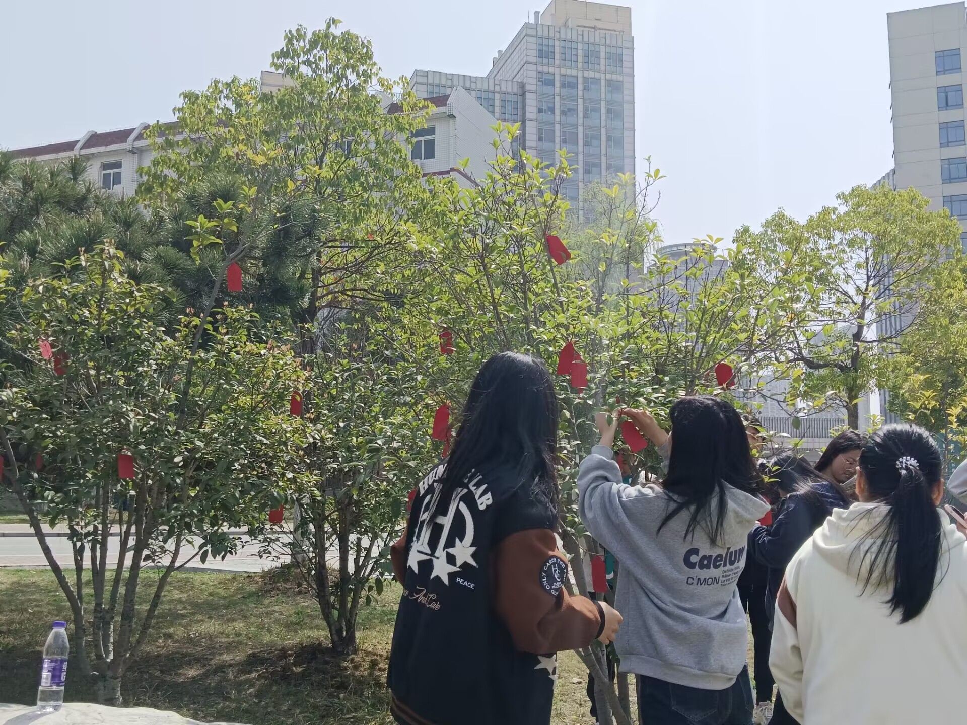 在此次活动中,广大同学积极参与,拿起校学生会事先准备好的笔和卡片,认认真真地写下内心中的愿望和对他人的美好祝福,然后将卡片挂在各自学院认领的树苗上。树上一个个美好的心愿卡片,一如同学们的灿烂青春。