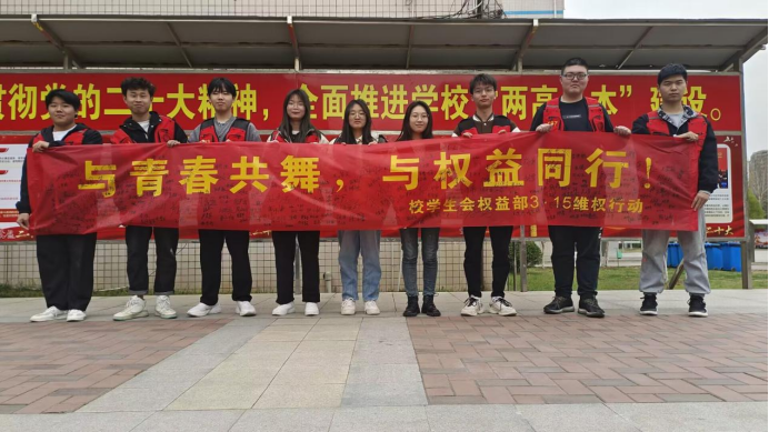 本网讯 为进一步推进消费维权教育进校园,引导同学们树立科学消费观,增强学生的消费维权意识,3月15日,校学生会权益部在学校食堂门口组织开展以“与青春共舞,与维权同行”为主题的3·15国际消费者维权日主题教育活动。