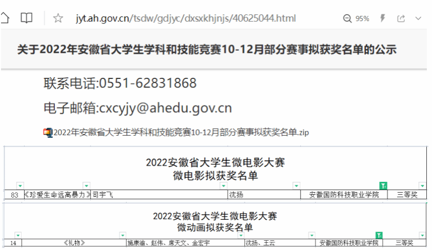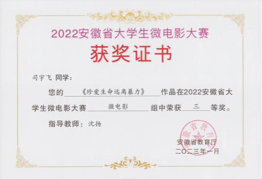 本网讯(动漫协会 沈扬)2月28日,由安徽省教育厅主办的2022年安徽省大学生微电影大赛圆满落幕。经专家评审、网站公示,动漫协会选送、信息技术学院专业教师沈扬老师指导的信息技术学院学生参赛作品获奖得三等奖2项。