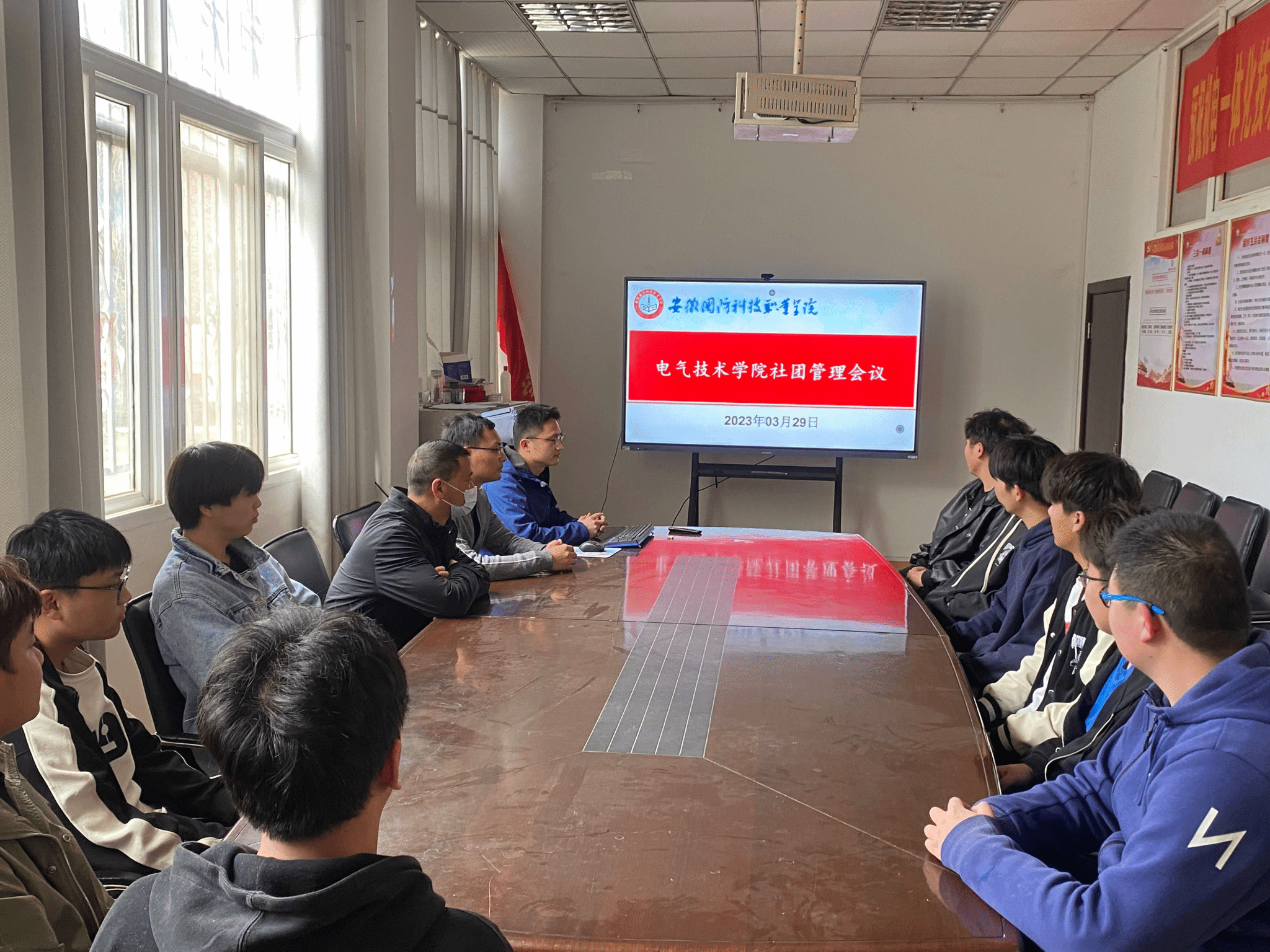 本网讯 为加强学生社团管理,规范社团的组织建设和活动开展,切实提升社团育人功能,3月29日中午,电气技术学院组织自动化创新协会、船舶爱好者协会在学院会议室召开社团建设管理工作会议。电气技术学院副院长、自动化创新协会指导老师江治国、电气技术学院团总支书记陈俊、团总支兼职副书记纪远以及两个社团主要负责学生干部参加了此次会议,会议由陈俊主持。