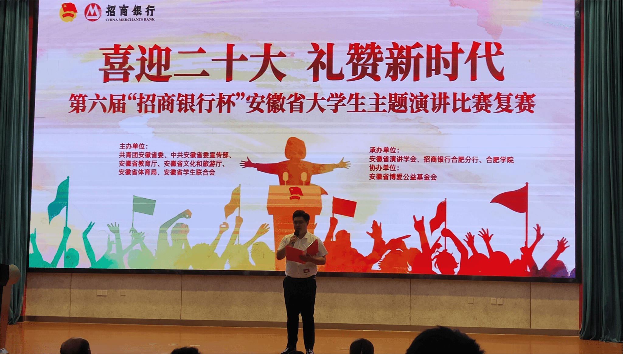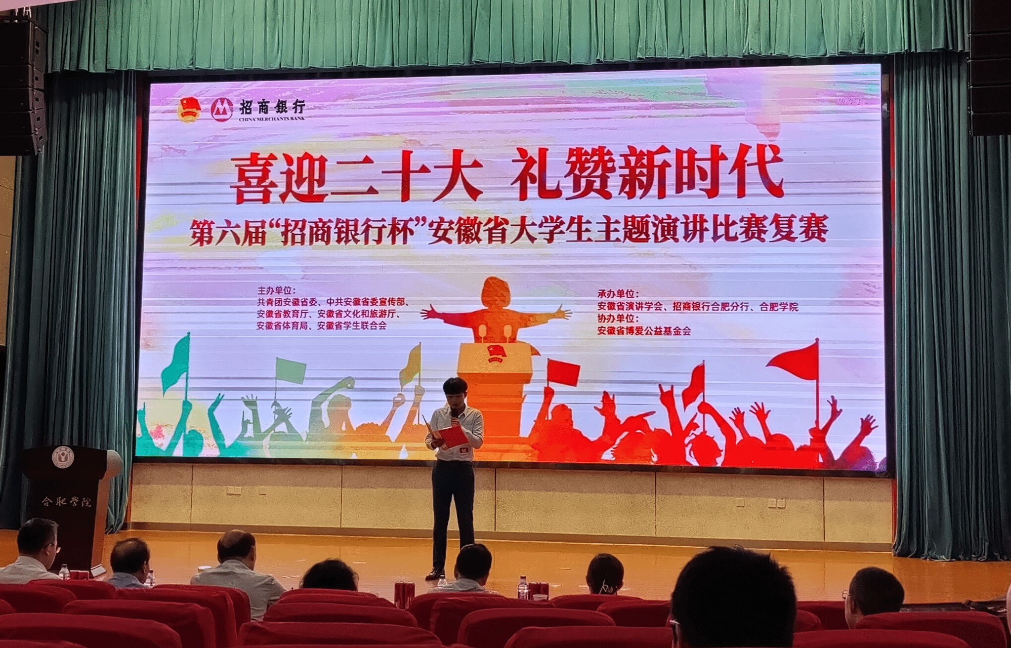 本网讯 由团省委、省委宣传部、省教育厅、省文化和旅游厅、省体育局、省学联共同主办的第六届“招商银行杯”安徽省大学生主题演讲比赛近日顺利落幕,来自全省高校近150名选手,按照本科组和高职组分别进行比赛,经过激烈选拔,beat365经贸学院高鹏飞、汽车学院张新佳荣获优胜奖。