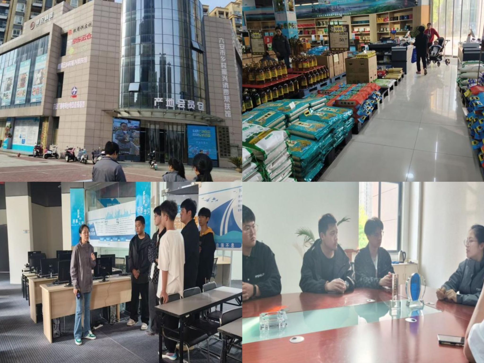 本网讯 为促进大学生的能力发展,发挥大学生的知识技能优势,4月9日,经贸管理学院物流协会、电子商务协会及营销策划协会学生负责人前往六安市乡村振兴消费帮扶馆进行参观调研。