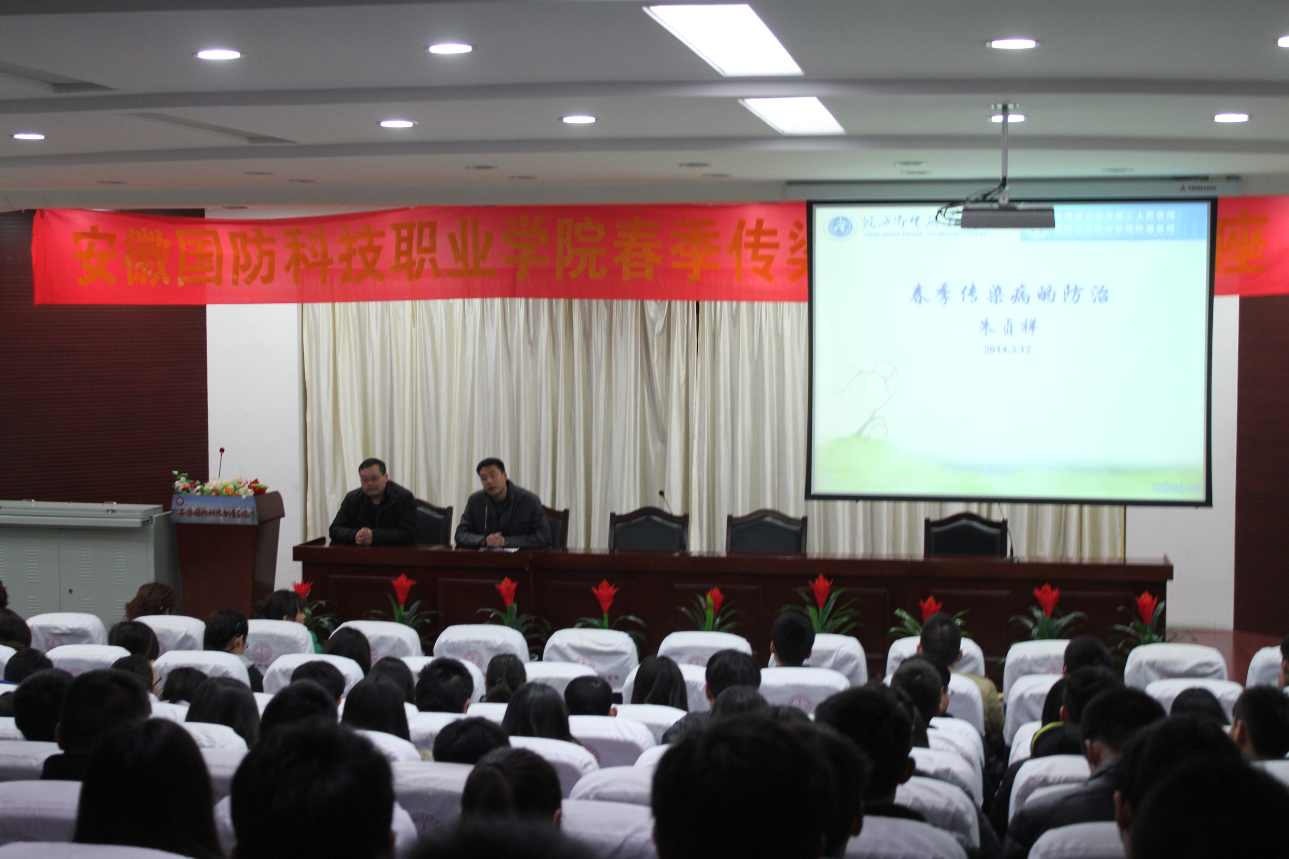3月12日下午,在图书馆报告厅成功举行了春季传染病防治知识讲座。此次邀请到皖西卫生职业学院高级讲师朱贞祥为我院广大老师和同学们做讲座,朱老师利用课件以图文并茂的方式为大家普及了关于传染病的发病原因,致病机理和预防保健知识。