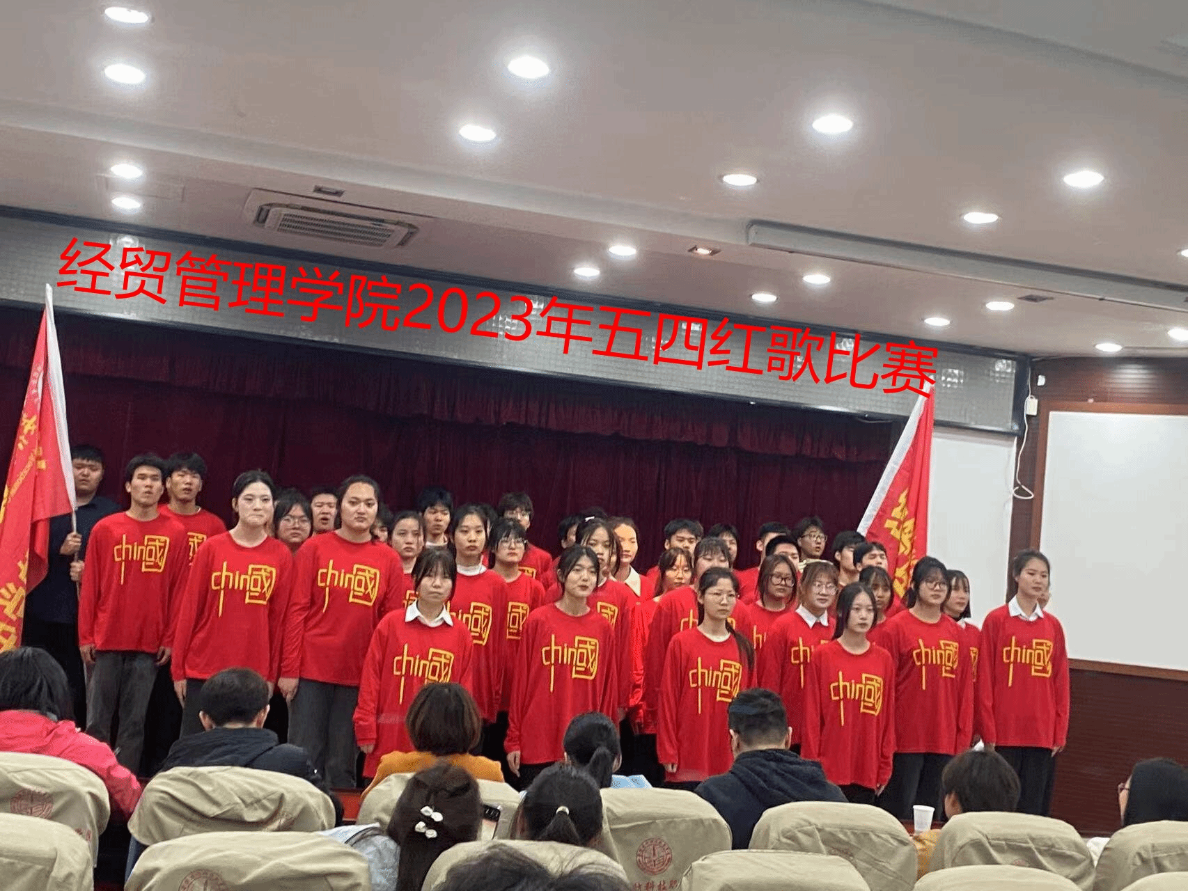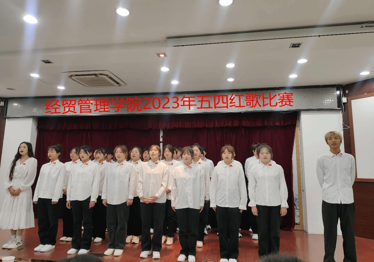 本网讯 为弘扬五四爱国主义精神,引导青年学生听党话、感党恩、跟党走,经贸管理学院于近日在图书馆报告厅隆重举办了“高举团旗跟党走 青春奋进新征程”五四红歌合唱比赛。经贸管理学院党总支组织委员张圣霞、办公室主任付玉梅、团总支书记许凤麟、辅导员聂垚、丁丁、班主任杨彩霞、徐婷婷、光辰宸、马壮、李礼、吴文杰应邀出席并担任评委。
