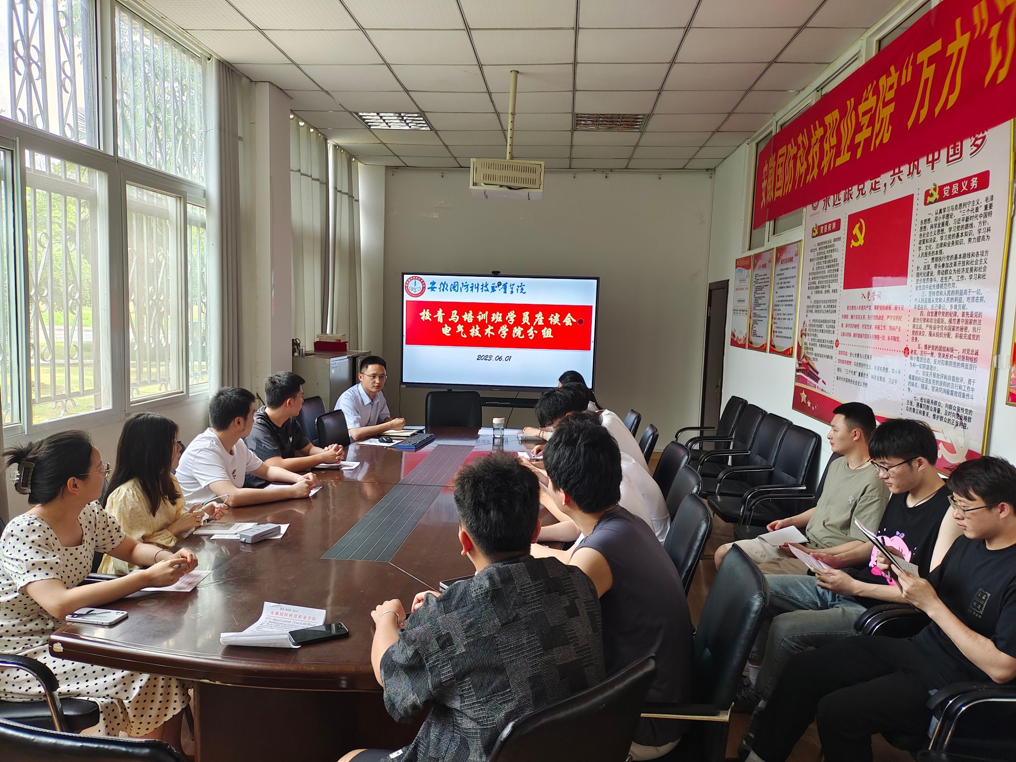 本网讯(电气技术学院 陈俊)为深入学习贯彻党的二十大精神,认真贯彻落实习近平总书记关于青年工作的重要论述,加强对广大青年的思想政治引领,持续推动“青马工程”提质增效,6月1日中午,电气技术学院在知行楼102会议室召开“青马工程”学员座谈会,学院全体参训学生参加了此次会议。会议由学院团总支书记陈俊主持。