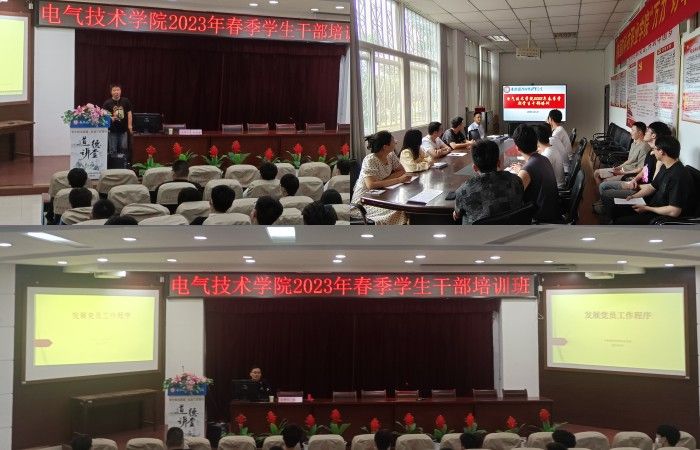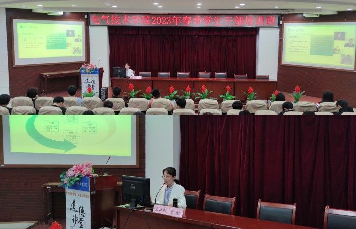 本网讯(电气技术学院 陈俊)为加强对学生干部培养和教育,提高学生的政治理论水平,提升学生干部管理能力和综合素养,助力学生成长成才,5月24日-6月1日,电气技术学院组织团总支学生会全体成员、各班级班长、团支书等开展2023年上半年学生干部系列培训活动,电气技术学院党总支书记叶启衡、党总支副书记张丽、城市建设学院副教授余波、电气技术学院团总支书记陈俊、辅导员纪远、吴泽建、王星星分别作为培训老师。