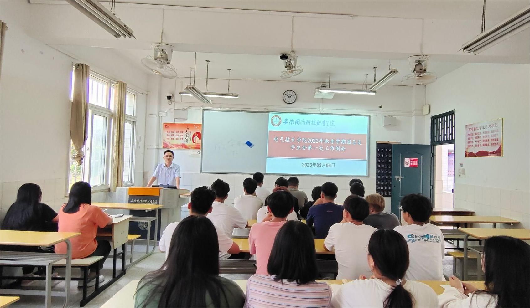 本网讯(电气技术学院 陈俊)为切实做好新学期各项工作,提升学生干部的工作能力和工作效率,规划各部门本学期工作要点,理顺工作思路,9月6日下午电气技术学院在2教102组织召开2023年秋季学期团总支学生会第一次工作例会。会议由学院团总支书记陈俊主持,学院团总支学生会全体学生干部参加了此次会议。