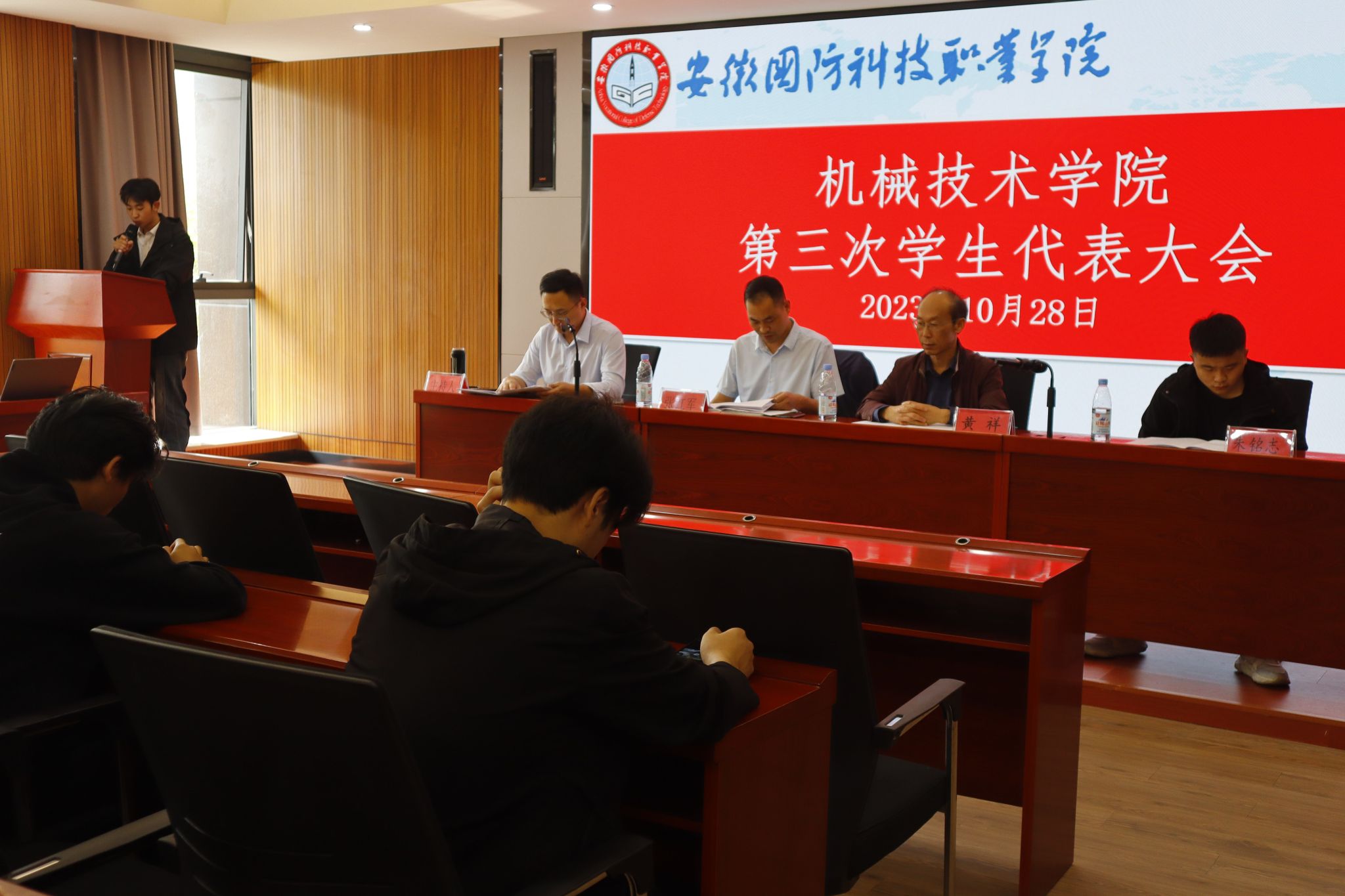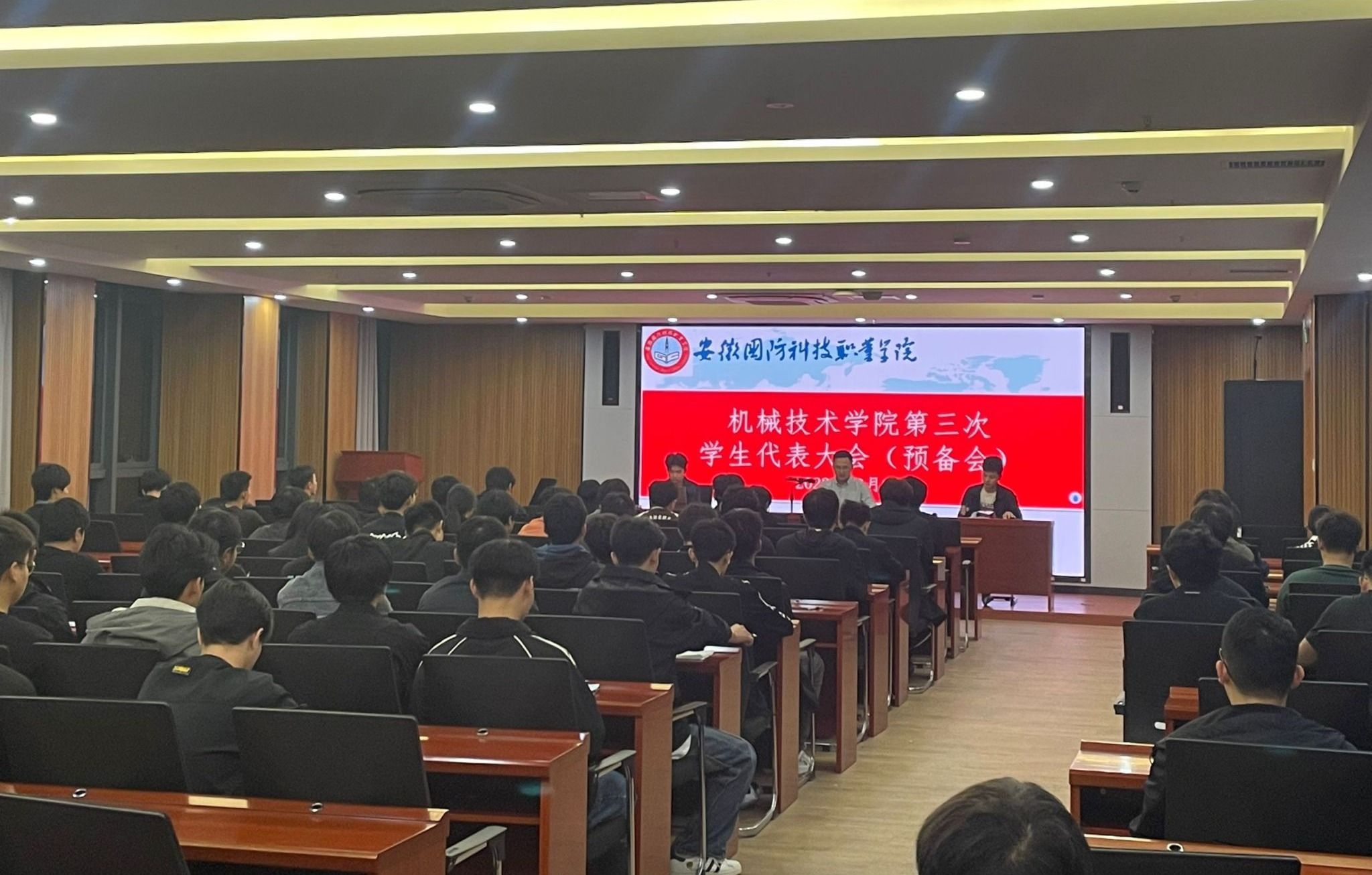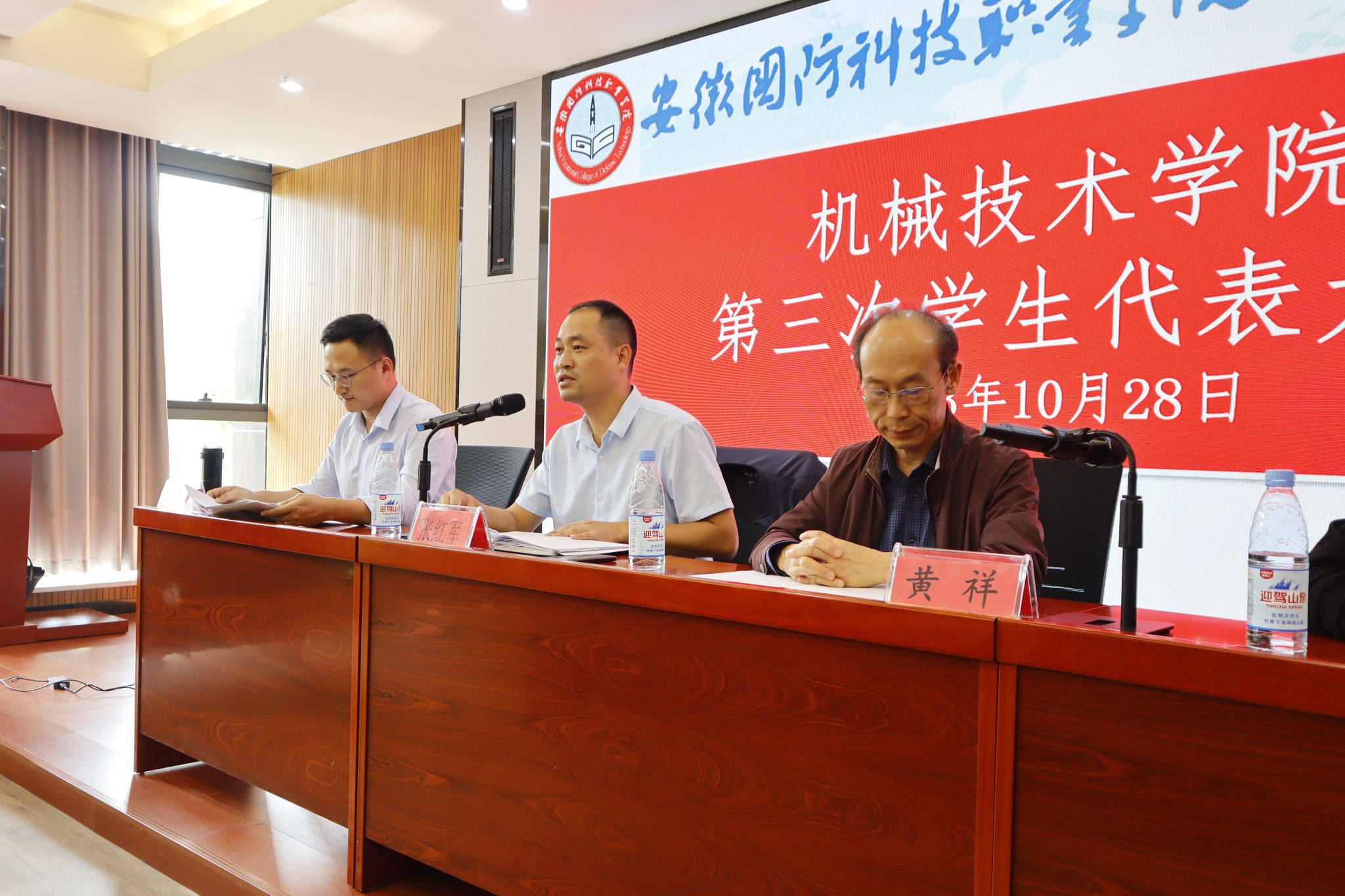 本网讯(机械技术学院 王腾州)10月28日上午,机械技术学院在产教融合中心第一报告厅召开第三次学生代表大会。学院党总支书记、院长黄祥,副书记张红军,第十九届学生会主席朱铭志及学生代表参加会议,会议由团总支书记王腾州主持。
