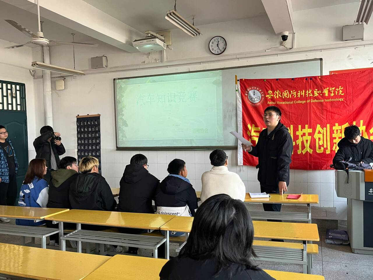 本网讯(学生通讯员 柯润)为传播科学思想、弘扬汽车文化,根据汽车技术学院第五届汽车科技文化节系列活动的安排,11月29日中午,汽车科技创新协会在二号教学楼208教室举办汽车文化知识竞答活动,汽车科技创新协会全体同学现场观看本次比赛。
