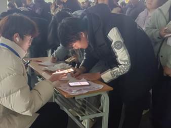 本网讯 随着英语四六级考试的临近,为提高同学们对英语四六级作文考试的写作水平和技巧,2023年12月15日中午,英语协会在产教融合中心B区大厅举办四六级英语范文摘抄活动。