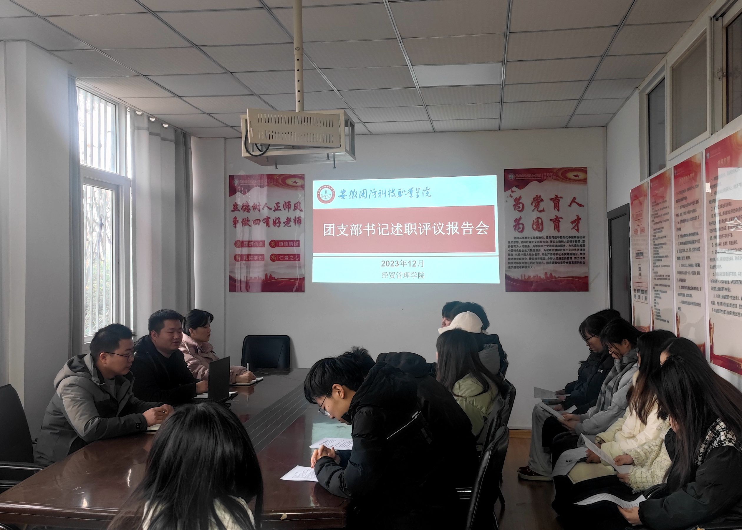 本网讯(学生通讯员 窦子昂)为进一步落实从严治团的工作要求,加强基层团支部书记履职尽责能力。12月15日中午,经贸管理学院团总支组织召开了2023年基层团支部书记述职评议报告会。学院团总支负责人陈玮、教师兼职副书记赵小娜、专职辅导员陈龙与会听取汇报。会议由院团总支学生副书记常一鸣主持。