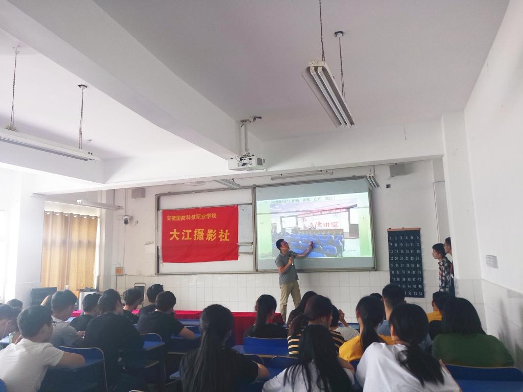 本网讯 为了进一步提高同学们的摄影水平,帮助学生学会实用的新闻拍摄技巧,掌握校园摄影知识,5月29日下午三点,由大江摄影社承办的“校园新闻摄影”讲座在二教105教室顺利举办。本次讲座特邀学校宣传部副部长杨旄袤老师担任主讲,校级学生组织、各学院学生会、各学生社团负责宣传工作的学生代表以及大江摄影社的同学们参与了讲座学习。