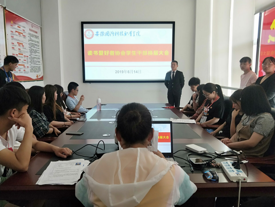 本网讯 (图书馆 尤朝莉)2019年6月14日下午,读者爱好者协会在图书馆会议室举行第七届换届大会。协会指导老师尤朝莉、协会会长汪寅许及协会主要负责人和部分会员参加了此次换届会议。会议由会长汪寅许主持。