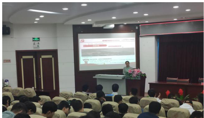 讲座中,戴柳老师从国家、安徽、学校三个方面,通过翔实的数据、丰富的案例和生动的语言铺陈了新中国70年的辉煌历程。首先她以近期马克思主义协会组织的社会实践活动的照片引导同学们感受安徽大地发生的沧桑巨变,回顾了新中国艰辛探索的辉煌历程。接着用一组组对比数据、一幅幅珍贵照片呈现了新中国取得的巨大成就,总结出新中国辉煌成就的70年,讲述着中华民族从站起来、富起来再到强起来这段波澜壮阔的壮丽诗篇。最后通过新中国发展趋势告诫同学们在新时代要有新担当,更应有新作为,在科学的指导下,不忘初心,牢记使命,不断加强理论学习和实践活动,树立正确的人生观和价值观,以学校的火车头精神引领自我成长、以安徽人敢为人先激励自我创新,共同推进中华民族伟大复兴中国梦的实现。整场讲座同学们情绪饱满、掌声不断、激情飞扬。