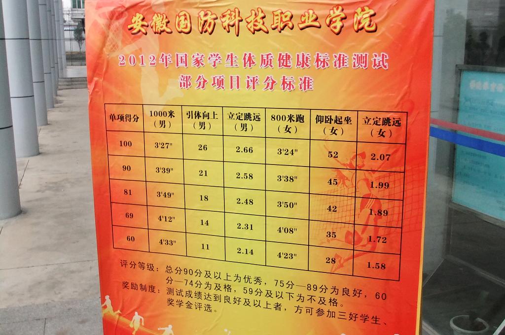 为认真落实安徽省教育厅“关于做好2012年《国家学生体质健康标准》测试数据上报工作的紧急通知” (皖教体函〔2012〕39号)的要求,使学院2012年体测工作顺利进行,学院分管领导召开体测工作专题会议,基础部具体落实体测各项工作。体测工作做到早安排、早通知,做好测试仪器的维修工作并对测试人员进行培训,做好测试工作的安全预案等,体育教师在课堂对此次体测工作进行了广泛宣传并对学生就体测项目进行了针对性的训练。
