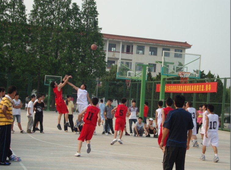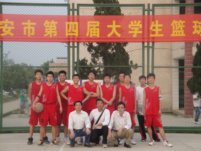 由省体育协会皖北分会主办,六安职业技术学院承办的六安市同城四高校篮球联赛于五月二十七日到五月二十九日在六安职业技术学院成功举办。本次比赛实行单循环制。国防学院代表队经过三场紧张角逐,完胜皖西卫生职业学院代表队,险胜六安职业技术学院代表队,惜败皖西学院代表队,获第二名。