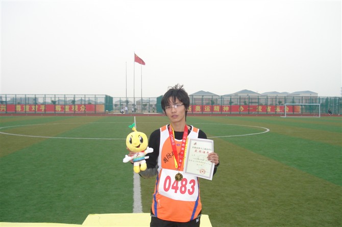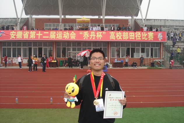 贾华荣获铅球、铁饼二项冠军,指导教师陈功立