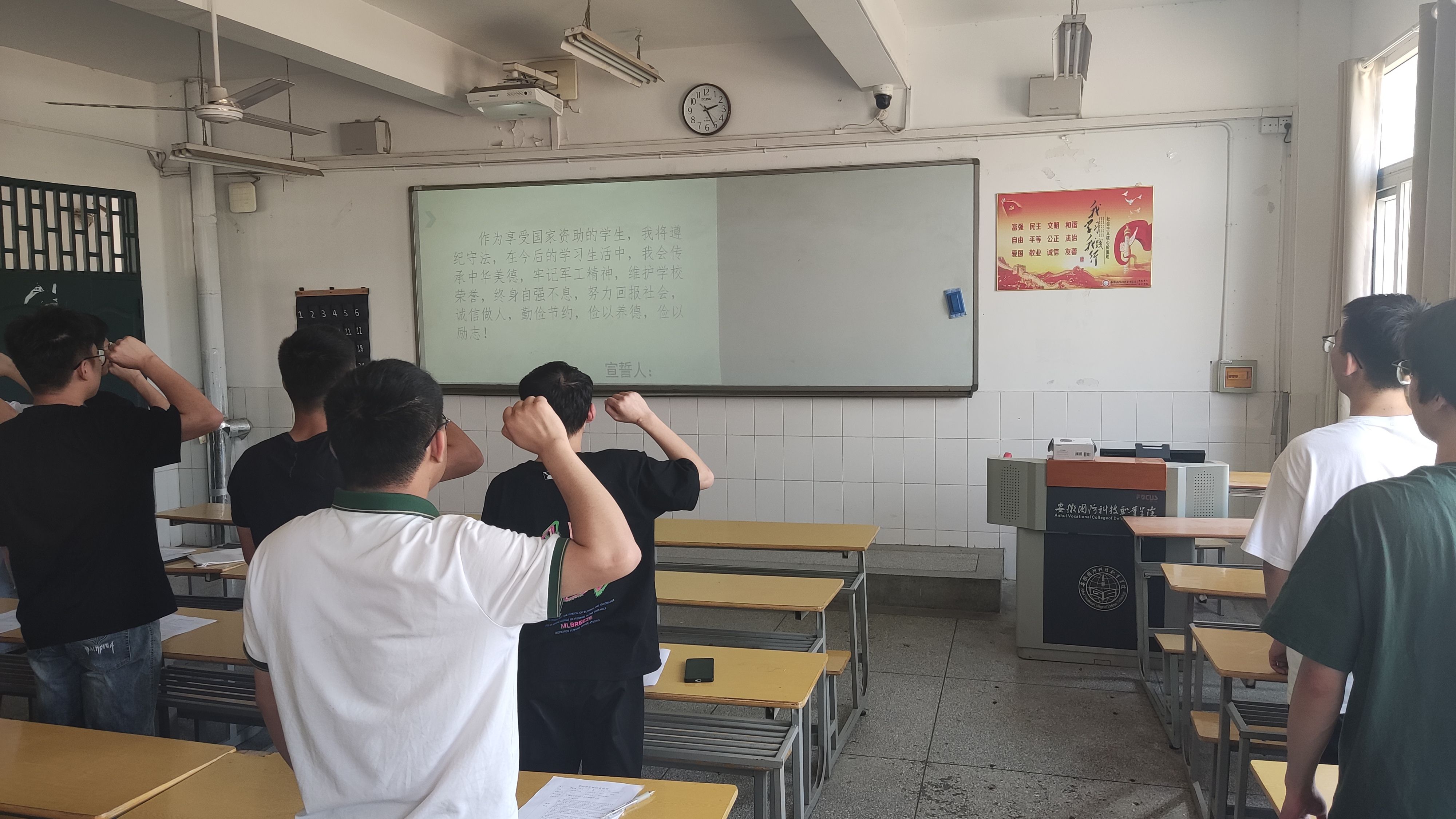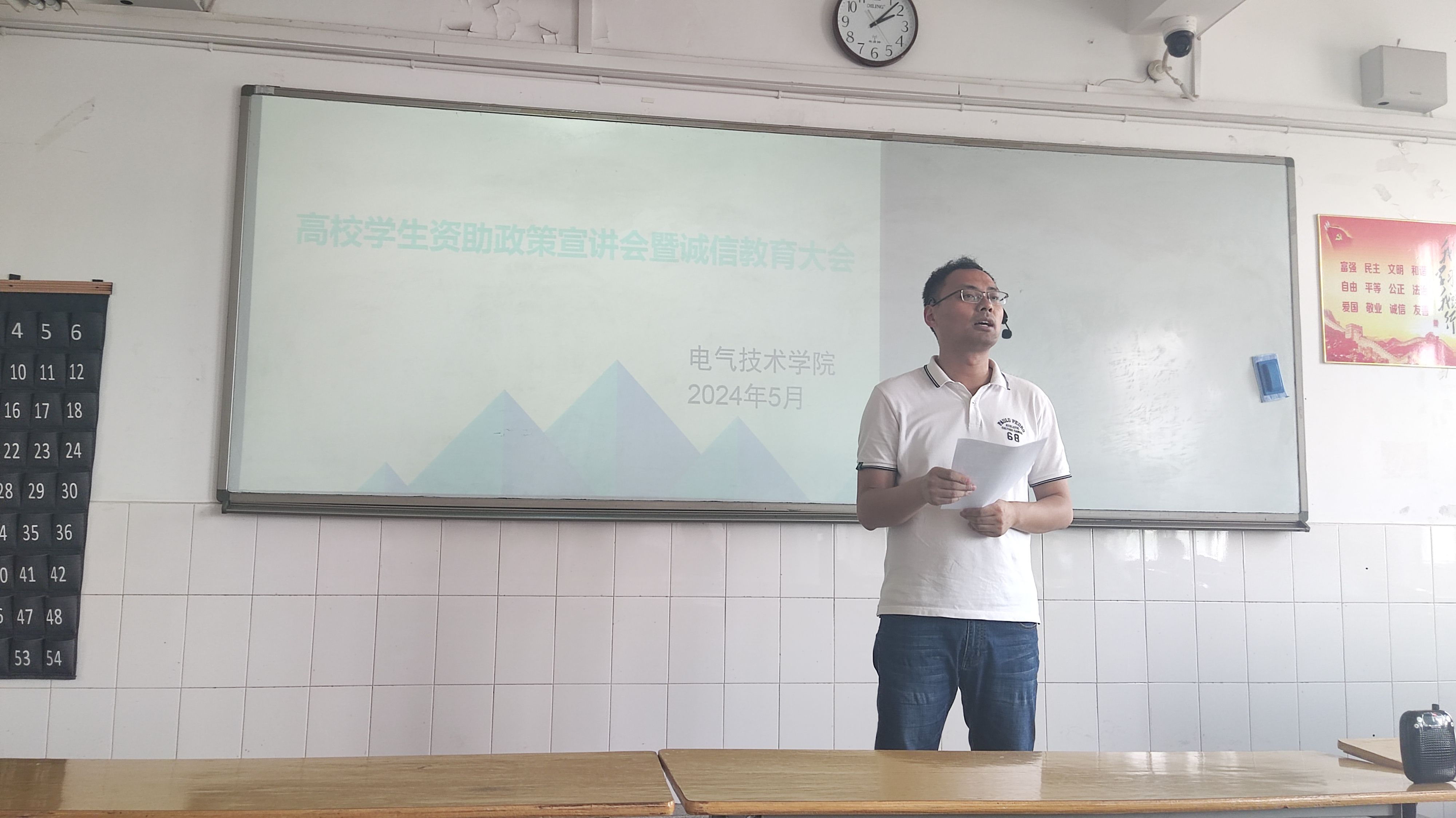 为推动学生资助诚信教育活动深入开展,进一步培养大学生树立诚信观念、增强法律意识,全面构建资助育人质量提升体系,构建诚实守信的校园文化氛围,展现电气技术学院学子“诚信朴实”的精神风貌。5月22日下午,我院在2教208教室开展了以“践行诚信 筑梦未来”为主题的资助诚信教育专题讲座暨宣誓,签名活动。