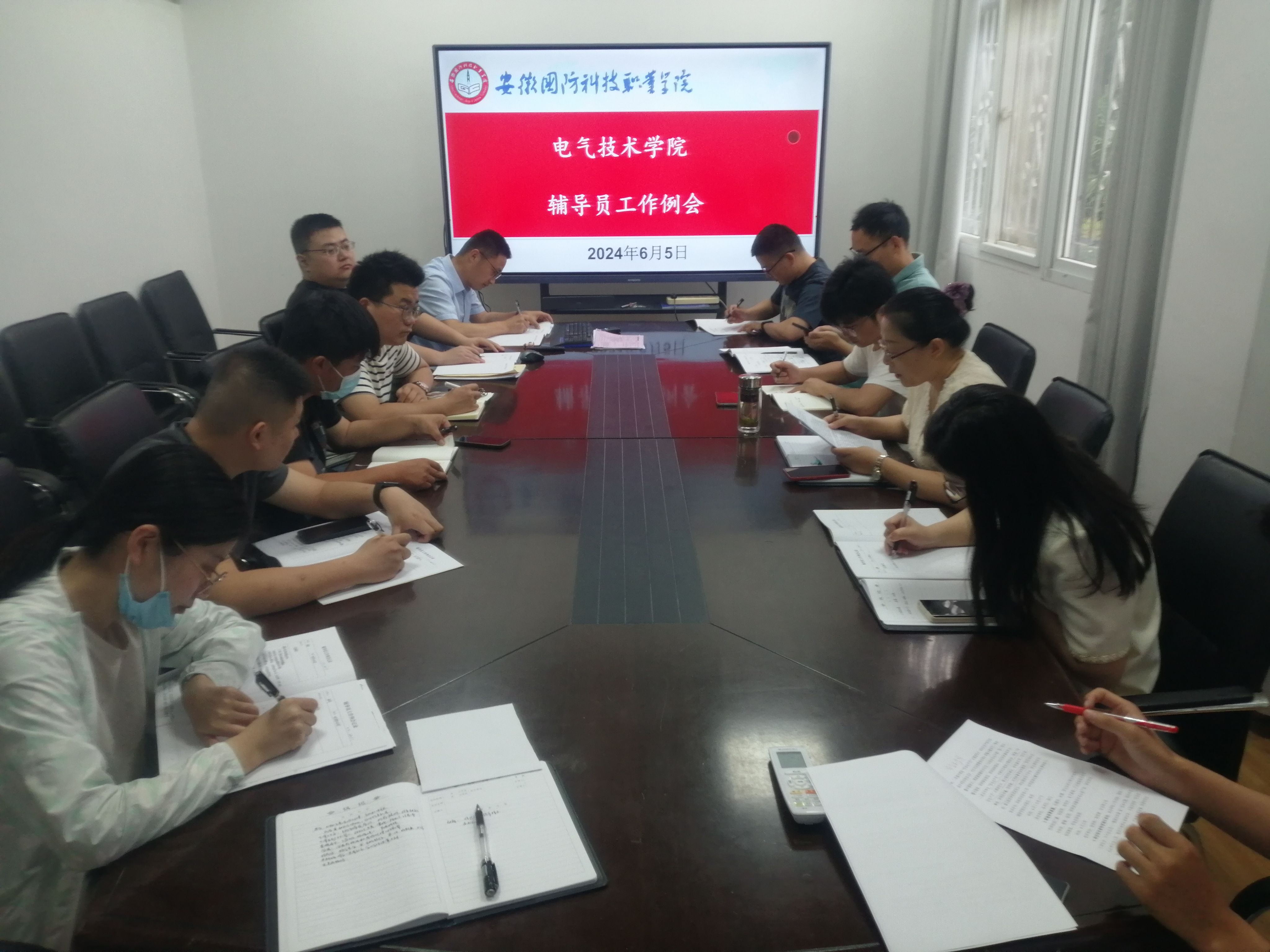 本网讯(电气技术学院 申晓伟)6月5日下午,电气技术学院在知行楼102会议室召开全体专兼职辅导员工作会议。党总支副书记张丽,全体专兼职辅导员参加会议。