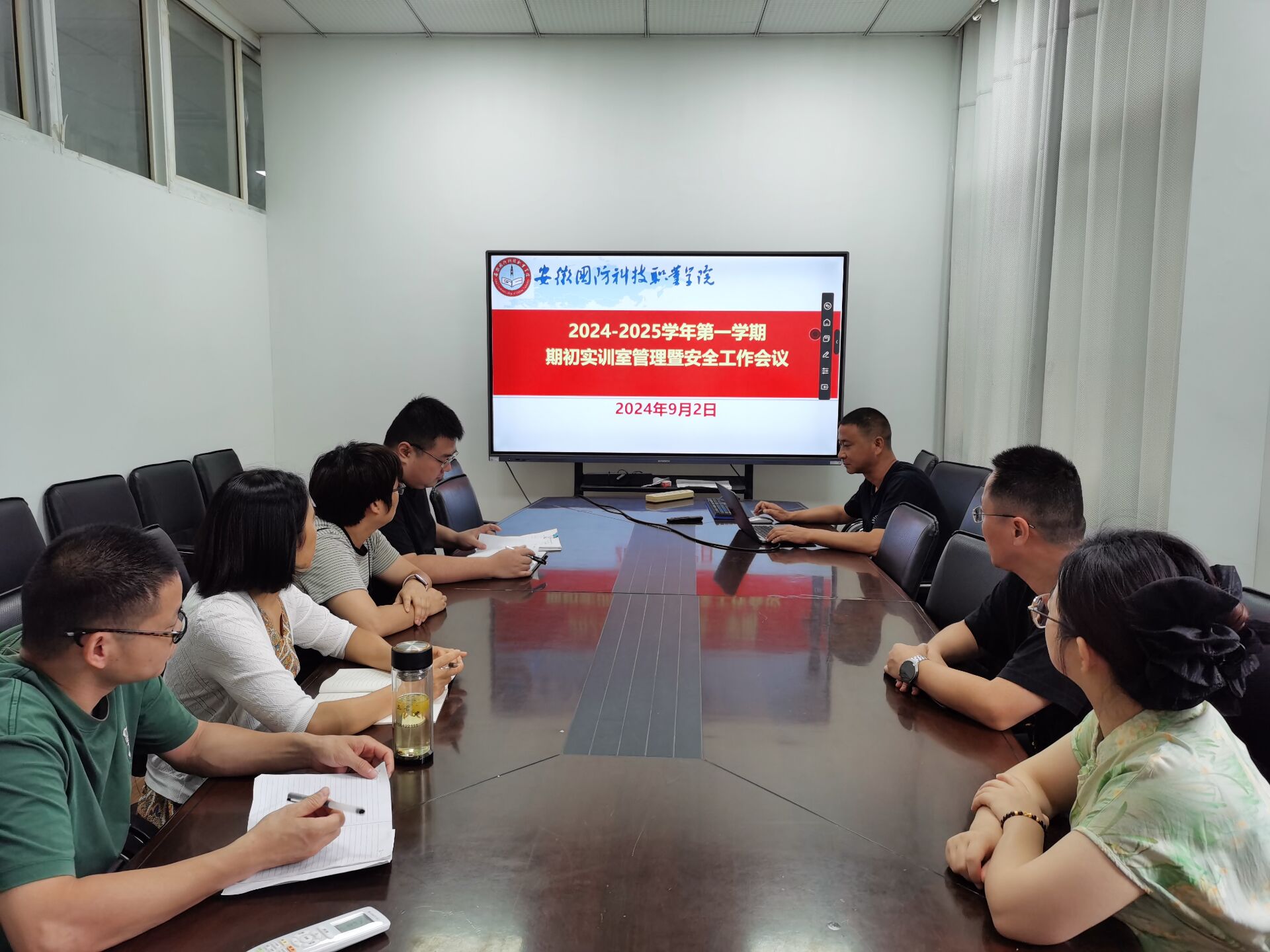 本网讯(电气技术学院 江治国)为深入贯彻习近平总书记关于安全生产的重要论述和重要指示精神,进一步加强新学期实践教学保障工作,提升学院实践教学的管理水平,确保实践教学工作的有序进行,筑牢实训室安全防线。9月3日上午,学院组织召开实训室管理暨安全工作会议,会议由副院长江治国主持,学院安全管理员和各实训室管理员参加了会议。