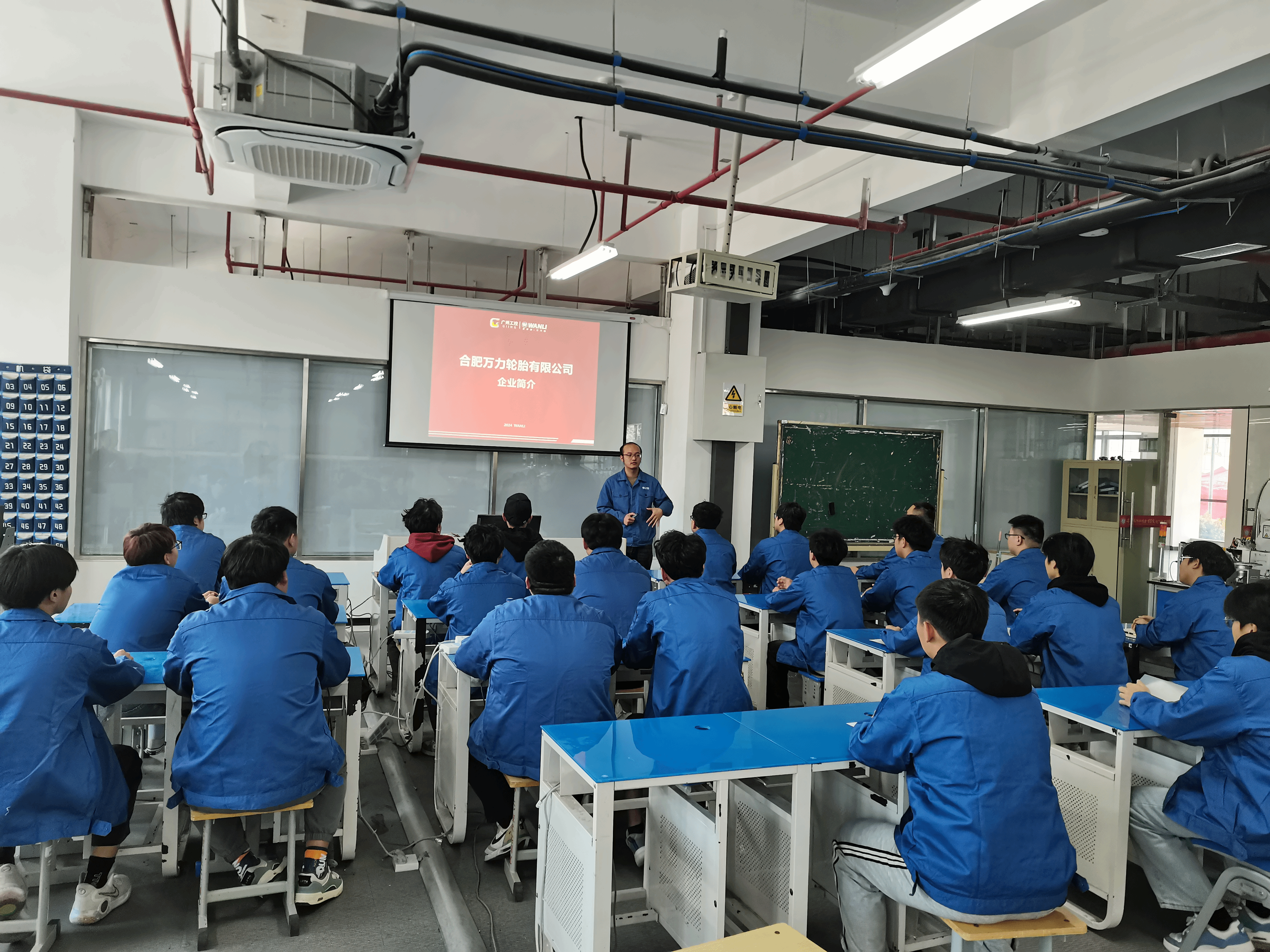 本网讯 为深入学习贯彻习近平总书记在全国教育大会上的讲话精神,持续推进产教融合、科教融汇,进一步提高beat365“万力订单班”的培养质量,10月9日下午,合肥万力轮胎有限公司两位企业导师深入校园,于产教融合中心B103为电气技术学院2023级“万力订单班”全体学生现场授课。