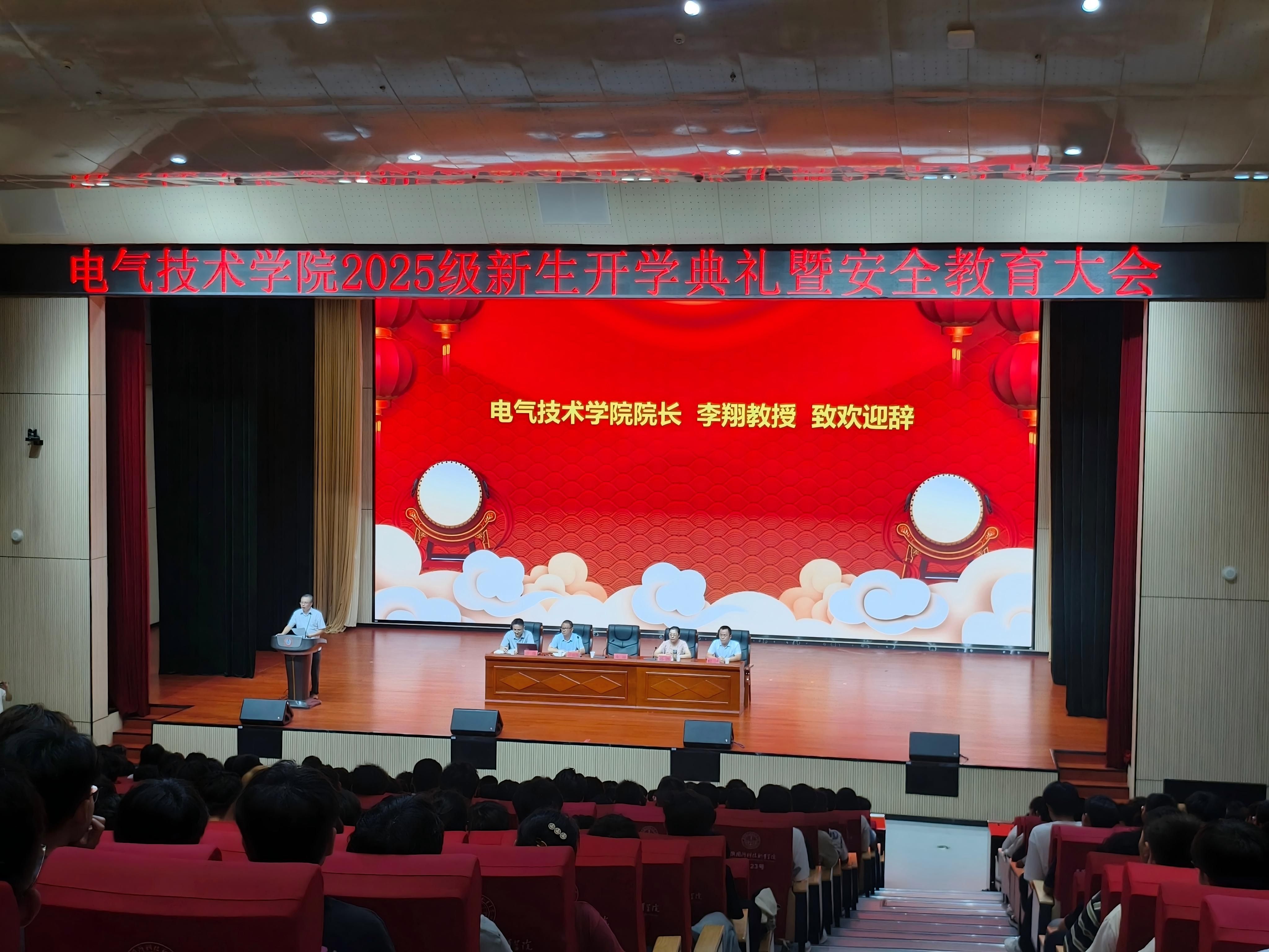 本网讯(电气技术学院 江治国)9月11日,电气技术学院在产教融合中心报告厅隆重举行了2025级新生开学典礼暨安全教育大会。学院党政领导、各专业带头人、骨干教师以及2025 级新生齐聚一堂,开学典礼在庄严的国歌声中拉开序幕。
