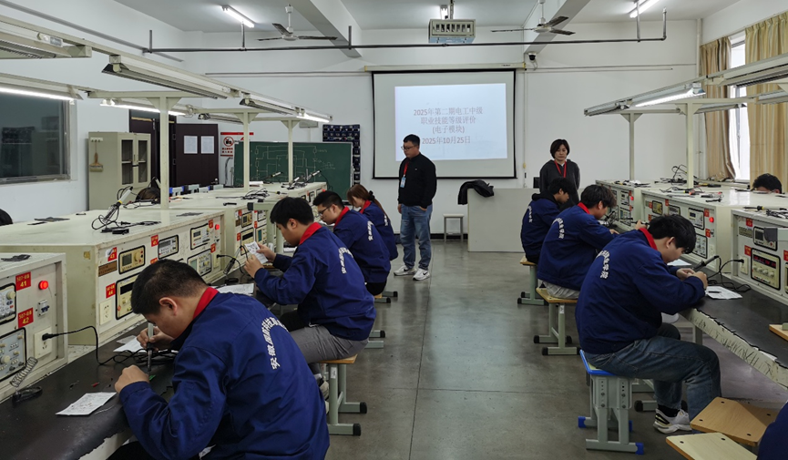 电气技术学院组织完成2025年下半年第一批电工中级工职业技能等级认定工作,累计完成370人参加考评,考试分为理论和实操两个环节,为保证考试顺利进行,学院在制定考务工作流程、安排布置考场、选派考评员等方面进行了周密部署和安排,确保认定工作的公正、公平、有序。