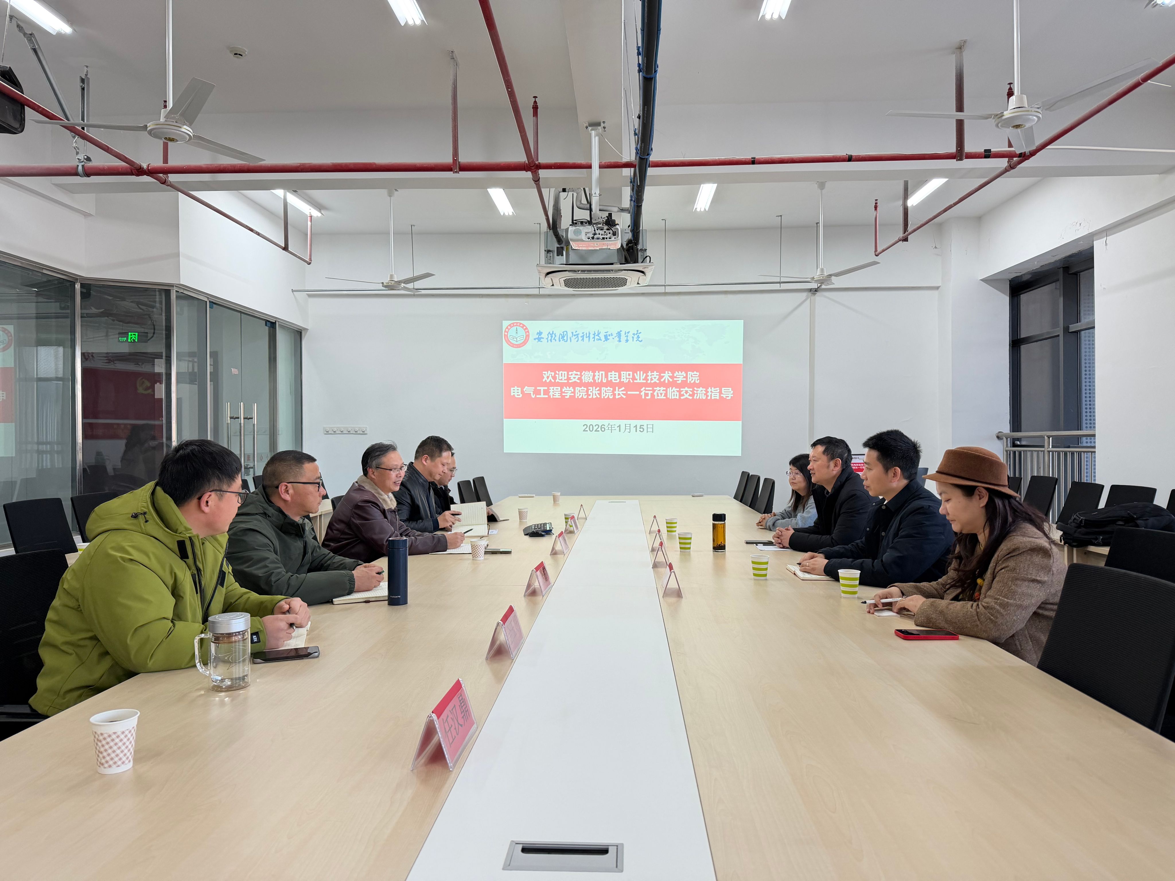 1月16日,安徽机电职业技术学院电气工程学院院长张国政、副院长周明龙带领专业教师团队,赴beat365唯一官方网站电气技术学院开展交流活动,电气技术学院院长李翔主持会议。