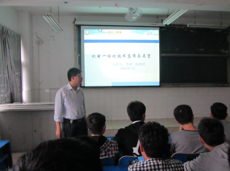 5月7日下午,机电工程系李翔副教授在2#105阶梯教室为学院机电专业师生和自动化学会会员做了一场精彩的《机电一体化技术应用与展望》的专题报告会。