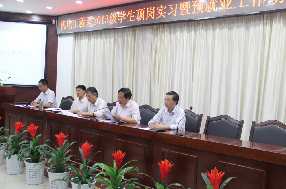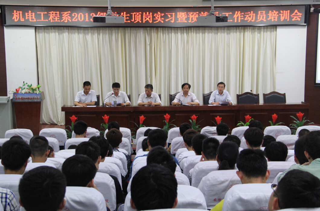 为进一步做好我系2013级学生的顶岗实习工作,让学生进一步明确顶岗实习的目的和意义,引导学生做好顶岗实习的相关准备,5月13日晚,机电工程系在学院报告厅召开2013级学生顶岗实习暨预就业动员培训会。系党总支书记陈兆同、主任陈小林、副主任李翔、党总支副书记罗威、毕业班全体班主任及2013级全体学生出席此次大会,会议由张红军主持。