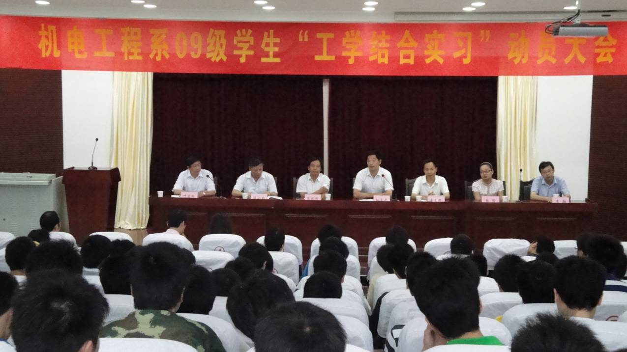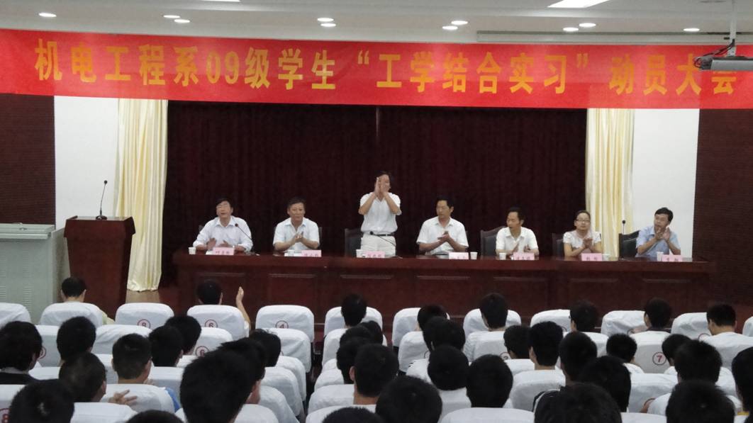 2011年6月25日上午,机电工程系在学院学术报告厅,召开了09级汽车类专业学生“工学结合实习”动员大会。参加会议的有奇瑞汽车股份有限公司乘用车公司人事经理张瑜、招聘经理瞿国莹、学生处处长陈兆同、系主任陈小林、系党总支书记孙良平、系副主任李翔、教研室主任凌文曙、系汽车维修技术实训中心主任刘领、班主任、专业教师、相关专业全体学生。大会由系党总支副书记叶启衡主持。