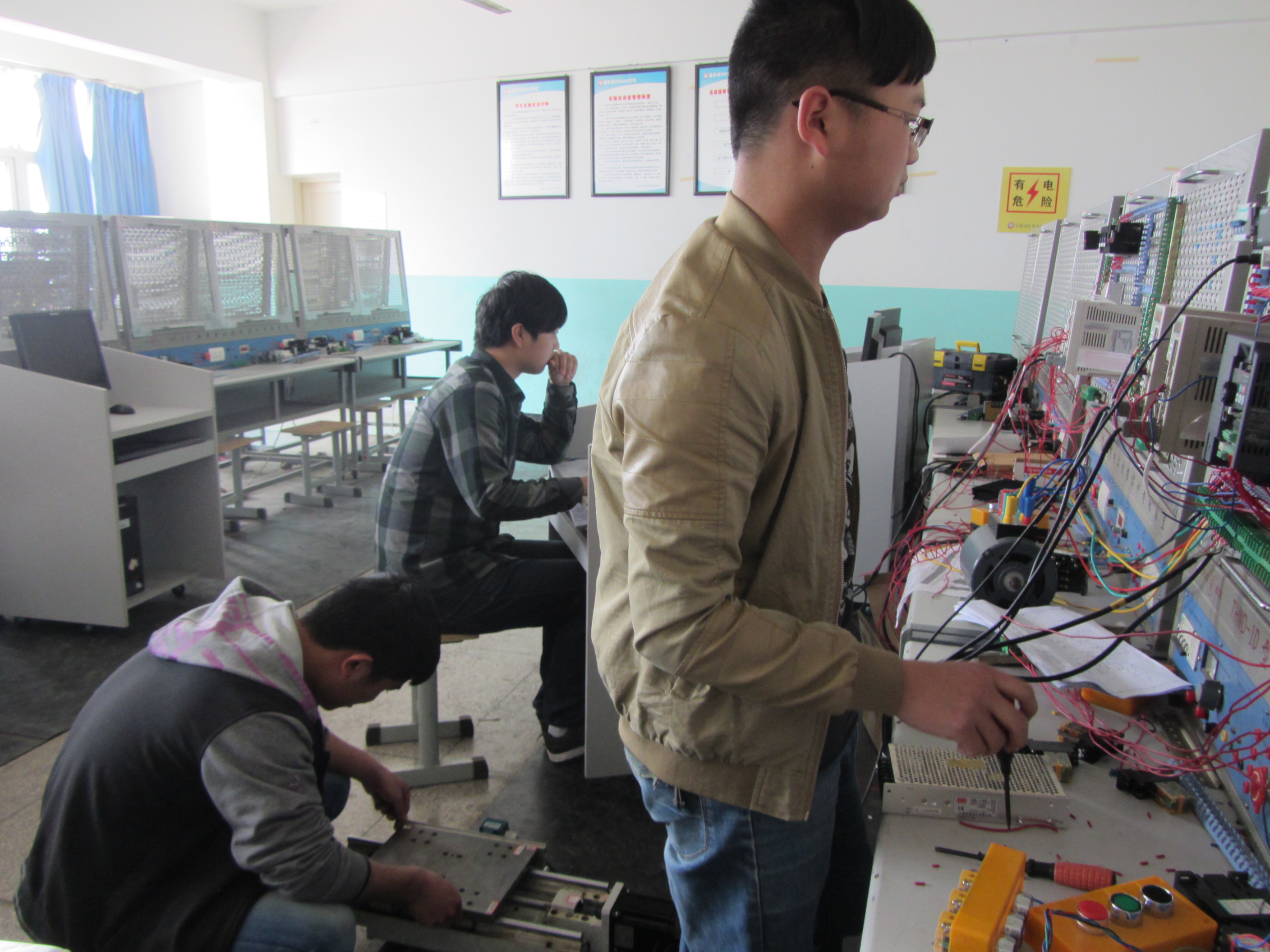 2014年安徽省职业院校技能大赛将于4月11日拉开帷幕,机电工程系开学初就已积极组织学生参加机械设备装调与控制技术、嵌入式应用开发、现代电气控制系统安装与调试和智能电子产品系统工程实施四个项目。为了备战此次大赛,机电工程系组织专业带头人、骨干教师对参加大赛的学生成立赛前培训班,并指定相应的高端技能型人才作为负责人。制定了参加竞赛的组织实施方案,成立了竞赛组委会,拟定了各项目的训练计划,明确了指导教师,正有条不紊地进行训练。