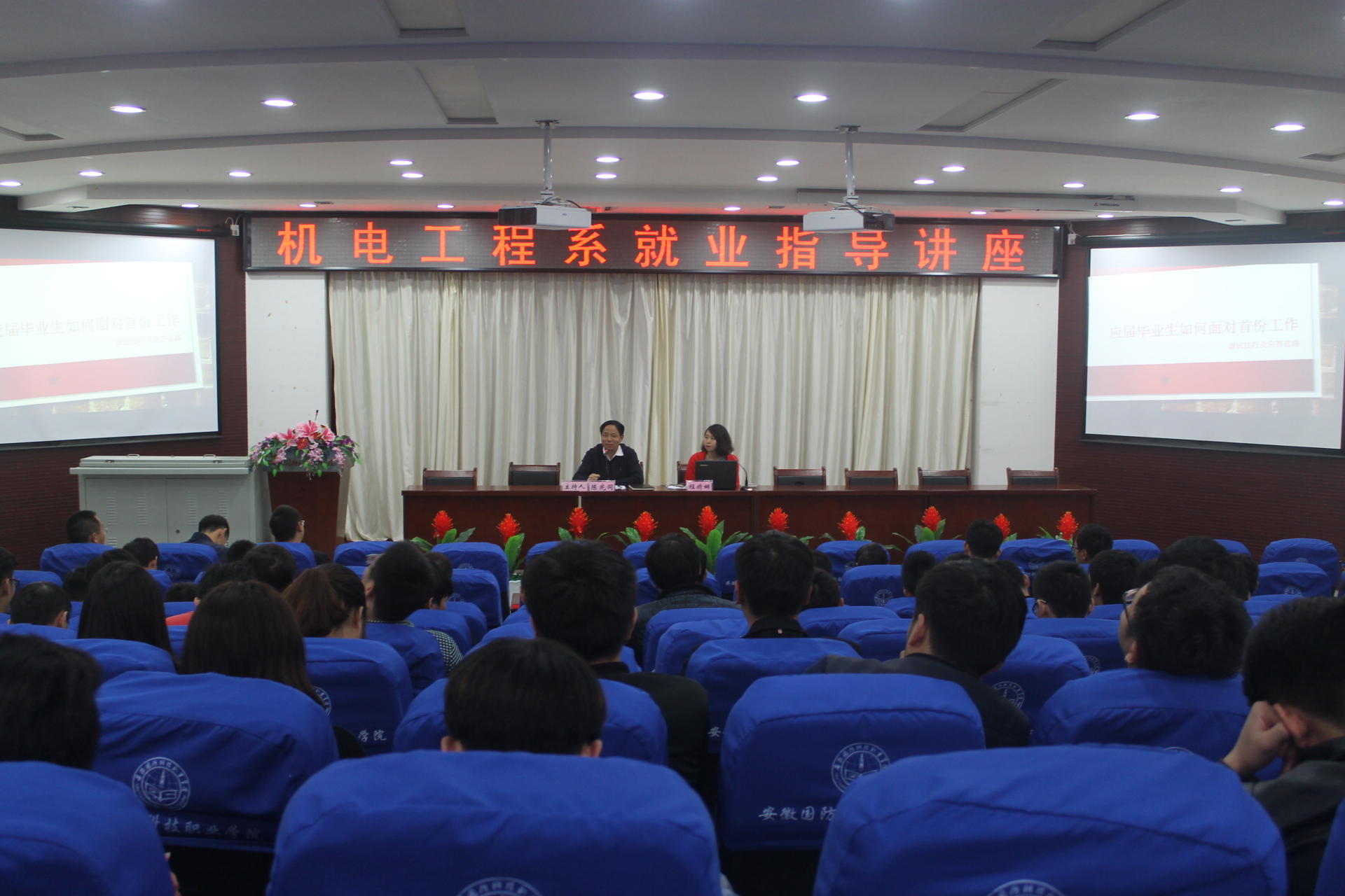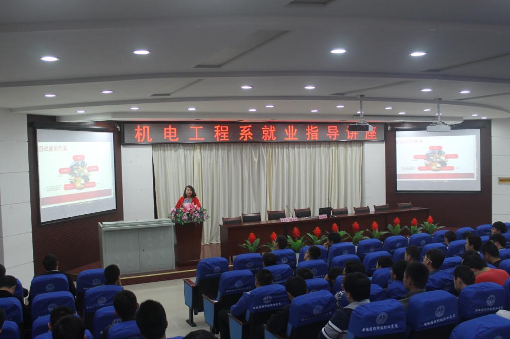 为做好我系毕业生指导与服务工作,提高我系毕业生对面试礼仪知识及面试技巧掌握,进一步提升职场竞争力。2016年10月14日,机电工程系邀请合肥万力轮胎有限公司招聘绩效系长程婧娴来校,在图书馆报告厅,举办了一场以“应届毕业生面试技巧及应答思路”为主题的就业指导讲座。该系2014级200余名同学参加了指导讲座,讲座由机电工程系党总支书记陈兆同主持。