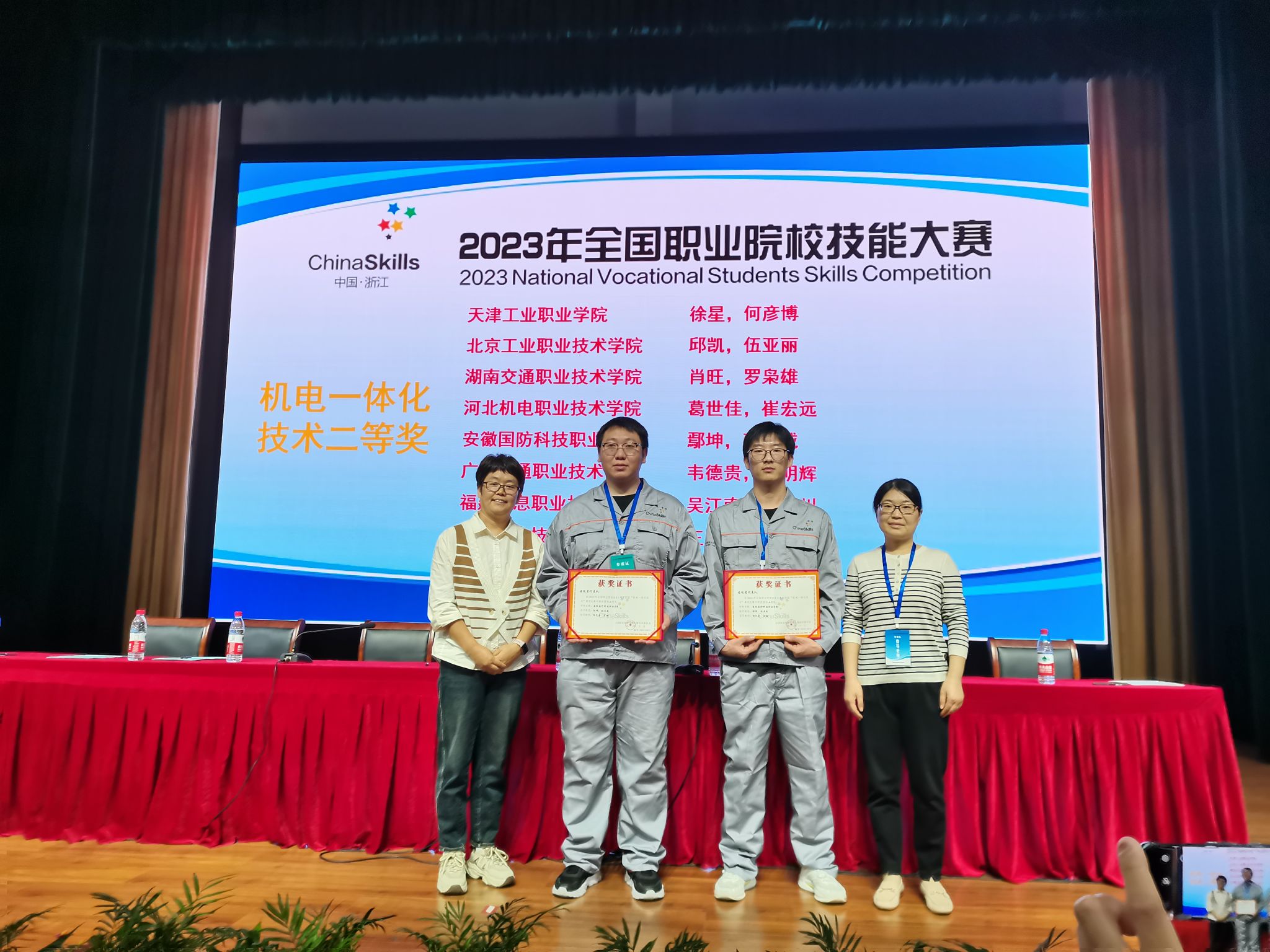 本网讯 10月17日,2023年全国职业院校技能大赛高职组“机电一体化技术”赛项在浙江机电职业技术学院落下帷幕。由beat365电气技术学院教师郭艺丹和王丽指导的学生鄢坤和张奥威凭借扎实的基本功,经过激烈角逐,荣获团体二等奖。