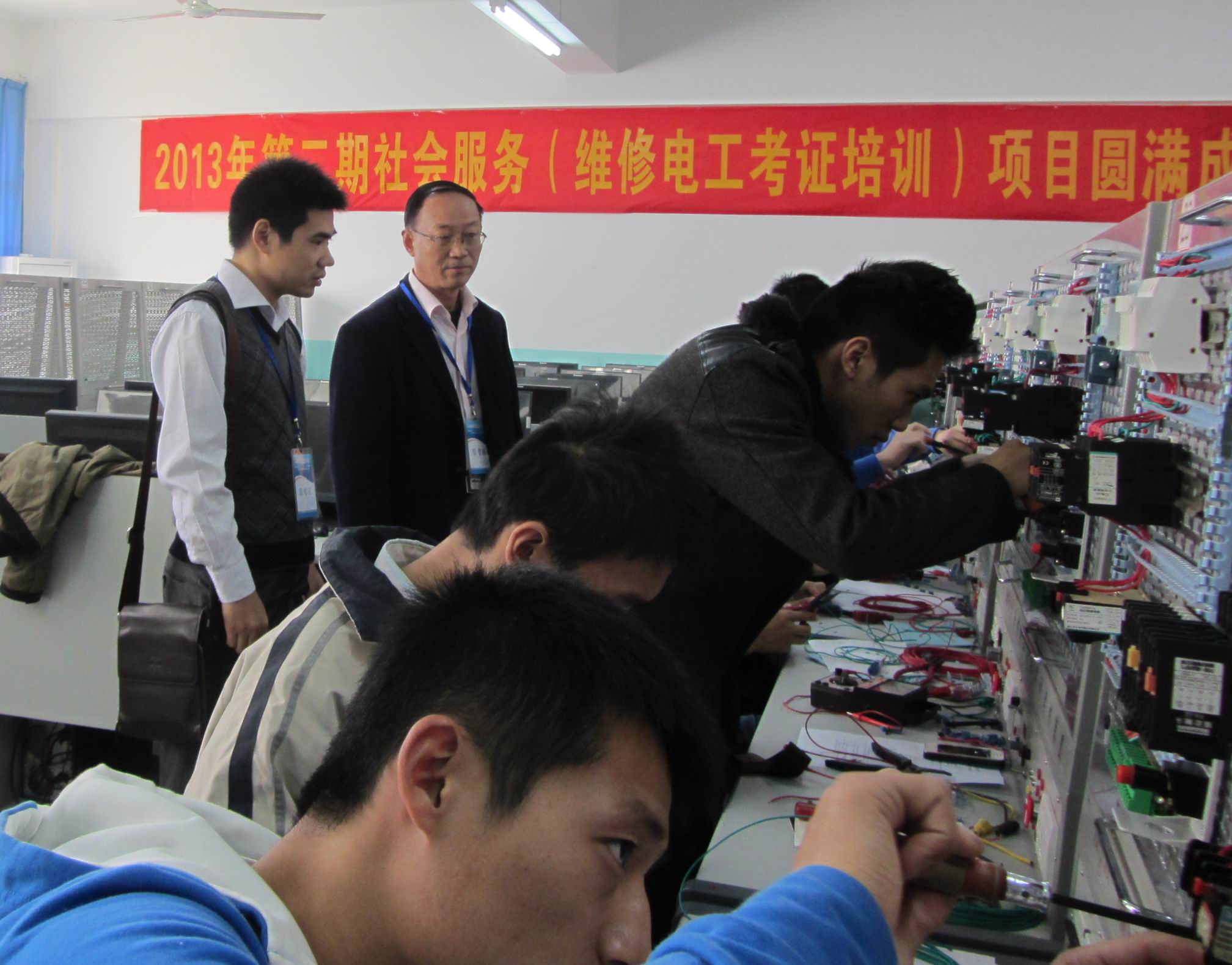 按照电工电子与自动化实训中心2013年度第二期社会培训项目(维修电工中级工考证)工作计划安排,在经过为期一个月的各模块的紧张培训后,于10月25日及10月26进行了该项目的职业技能鉴定(考证)工作。本次鉴定工作在六安市职业技能鉴定中心的全程指导、组织和监控下开展;系实训中心在学院职业技能鉴定站的指导下考前精心准备,确保考证工作顺利实施;考评员认真负责、严格规范、任劳任怨,参考学员沉着冷静、认真操作、稳定发挥,鉴定工作获得了巡考领导的高度评价。