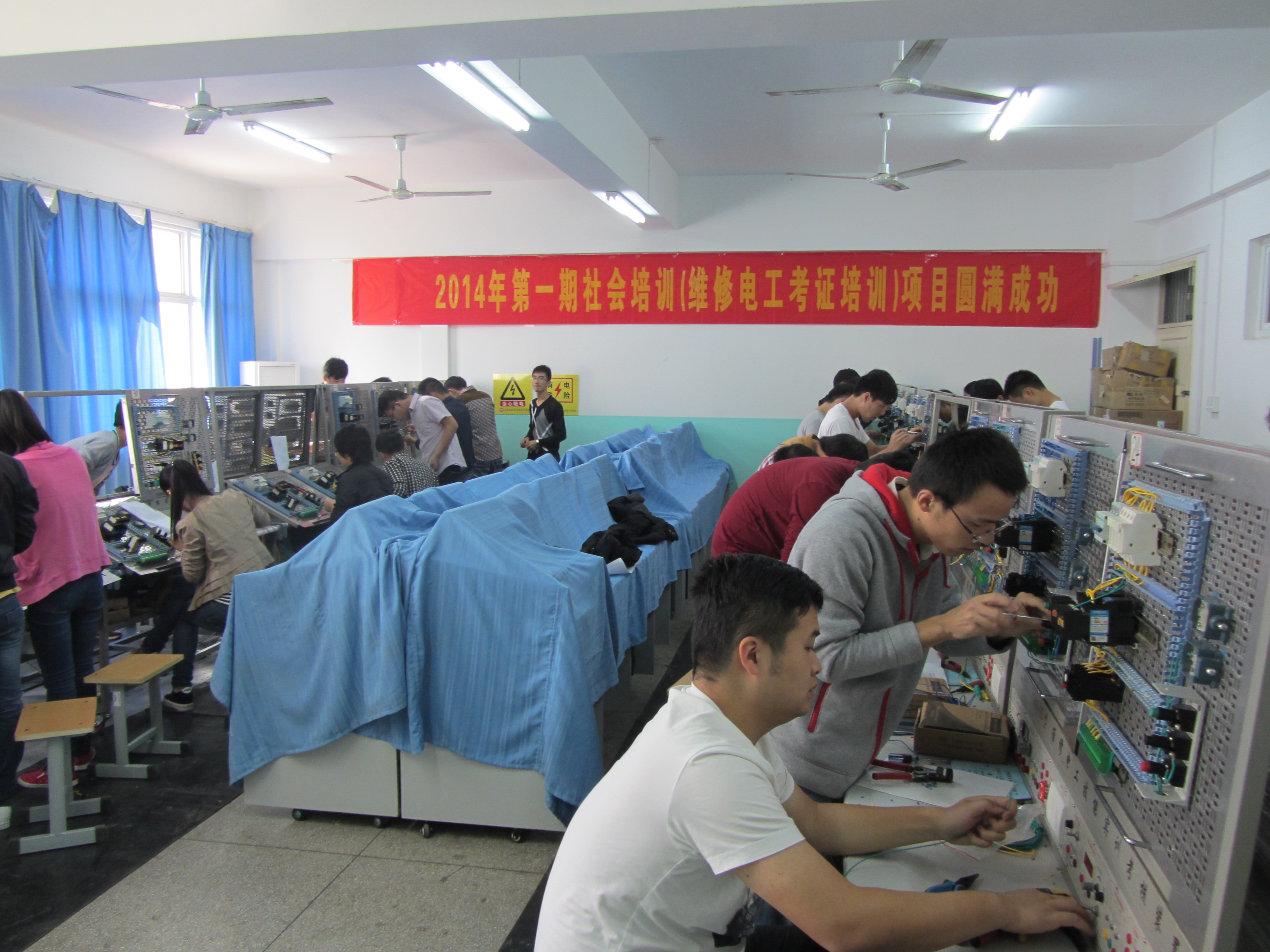 按照我系电工电子与自动化实训中心2014年度第一期社会培训项目(维修电工中级工考证)工作计划安排,在经过为期一个月的各模块的紧张培训后,于10月17日及10月18日进行了该项目的职业技能鉴定(考证)工作,98名学员参加了培训和考核,91名学员成绩合格。本次鉴定工作在六安市职业技能鉴定中心的全程指导、组织和监控下开展;系实训中心在学院职业技能鉴定站的指导下考前精心准备,确保考证工作顺利实施;考评员认真负责、严格规范、任劳任怨,参考学员沉着冷静、认真操作、稳定发挥,鉴定工作获得了巡考领导的高度评价。