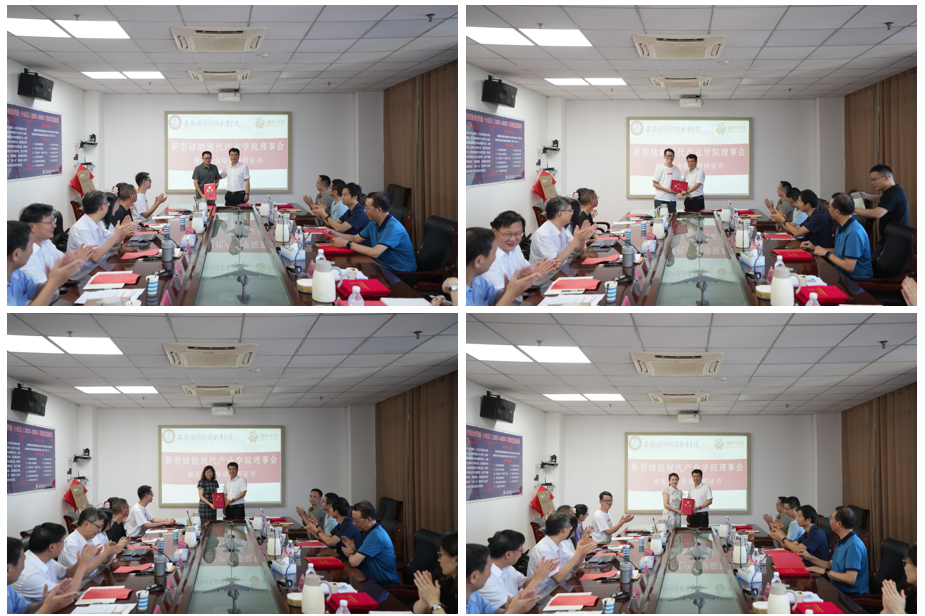 随后,徐正红校长宣读了新型储能现代产业学院第一届理事人员名单,并宣布新型储能现代产业学院正式成立。在与会人员的共同见证下,校企双方进行了新型储能现代产业学院签约和揭牌仪式,并为副理事长成员、理事成员、产业教授、行业导师及企业培训导师颁发了荣誉证书。