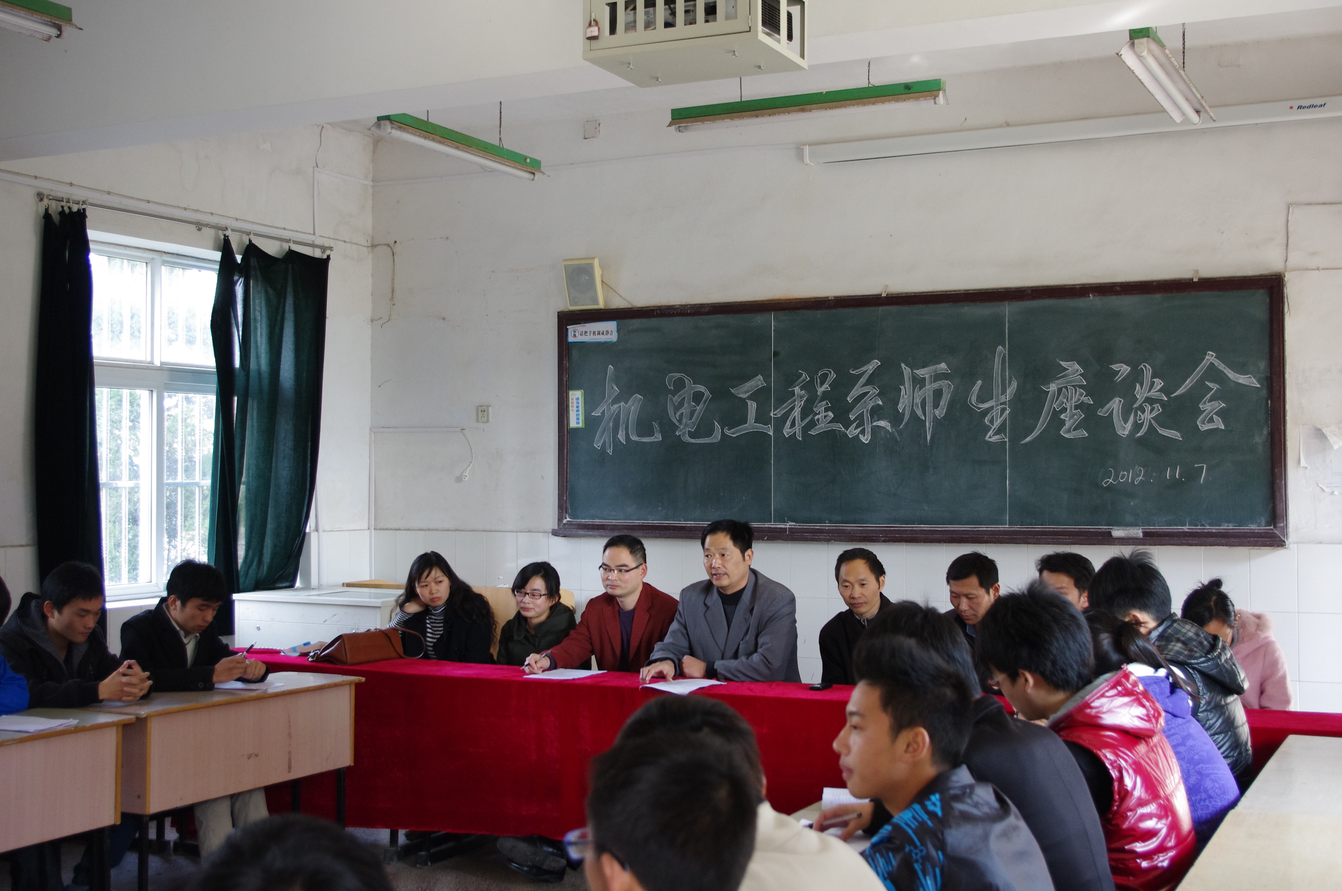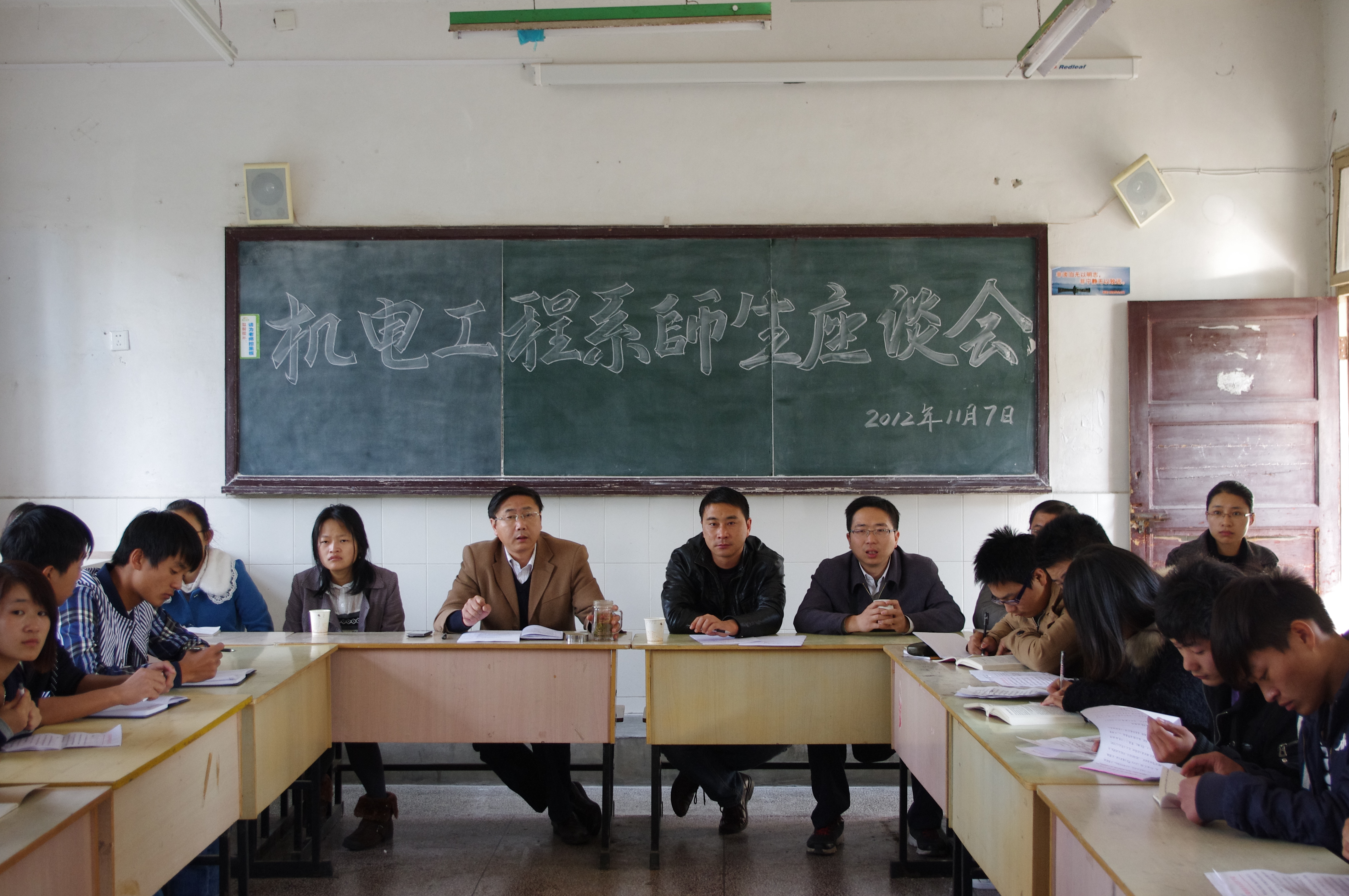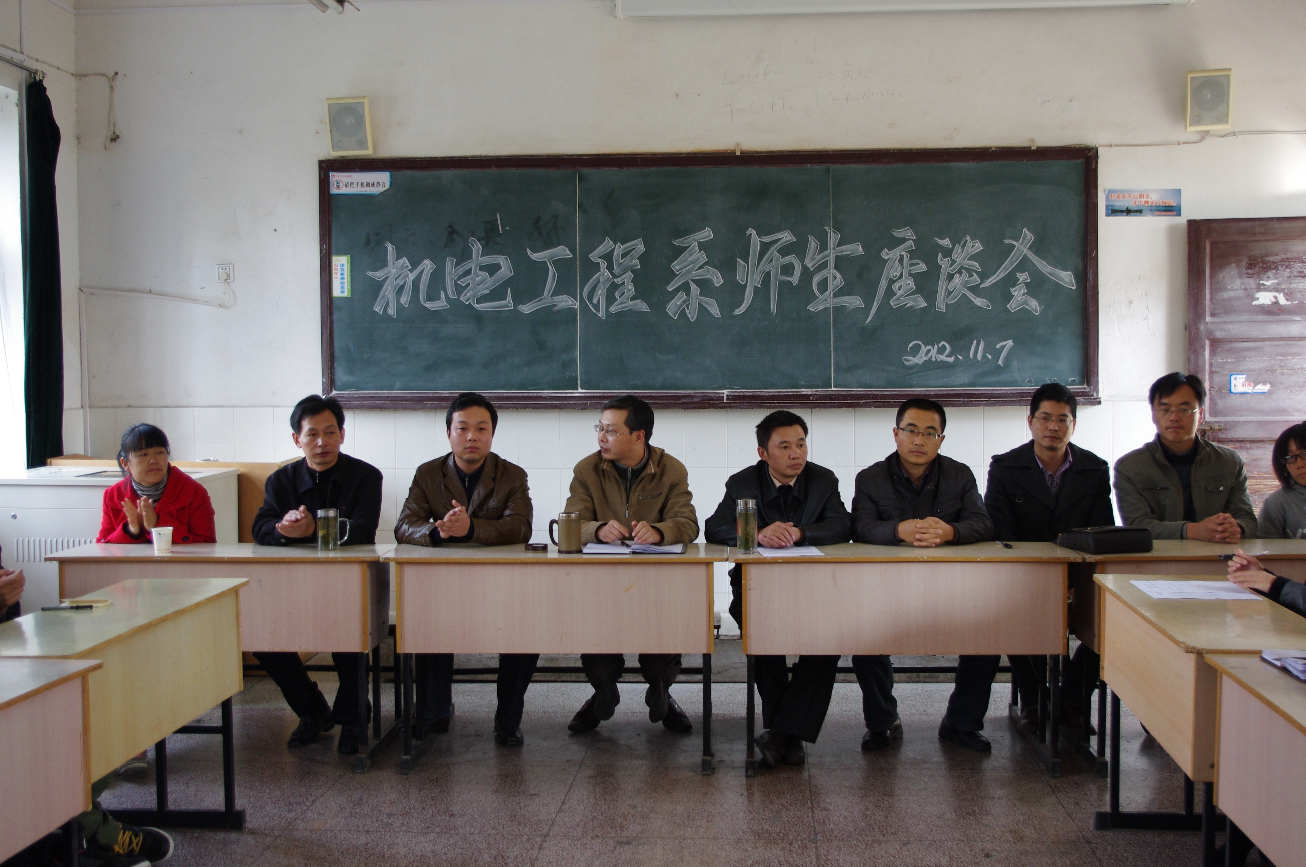 机电工程系与2012年11月7日下午,在1号教学楼102、103、104教室召开了2012/2013学年第一学期师生座谈会,参会的有机电工程系所有专业课教师及11、12级8个专业共28个班级的学生代表。