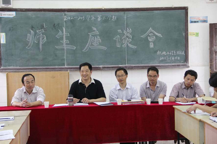 为提高教学质量,增进师生交流与了解,解决学生的问题和疑惑,机电工程系于2013年5月15日下午在1#102、103、104教室,召开了2012/2013学年第二学期师生座谈会,参会的有机电工程系本学期所有的专业课教师及11、12级8个专业共28个班级的学生代表,会议按专业分成11级自动化专业群、12级自动化专业群、汽车专业群三个专场,分别由系陈小林主任、孙良平书记、李翔副主任主持。