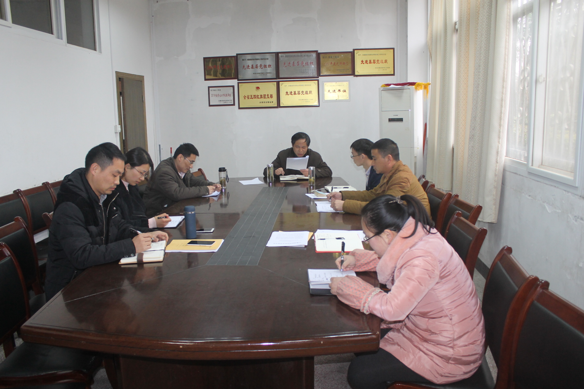 为了进一步推进机电工程系学生党建工作组织化、制度化、具体化,3月22日下午,机电工程系党总支组织召开2017年党建工作专题会,会议由机电工程系党总支书记陈兆同主持,系党总支副书记罗威、机电党支部书记张红军、电气党支部书记史媛芳及全体支部委员参加了会议。