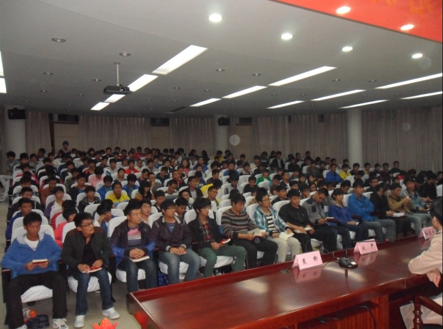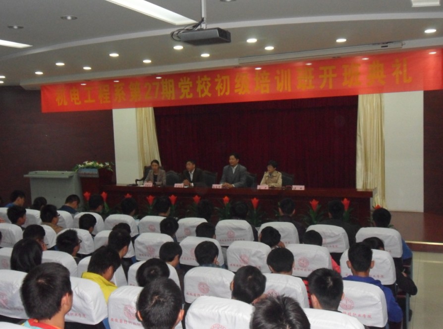 2012年10月30日晚7点30分,图书馆报告厅内座无虚席、气氛热烈,我系第27期入党申请人培训班开班典礼在这里顺利进行。开班典礼由系学生党支部书记史媛芳主持,系党总支书记孙良平、党总支副书记叶启衡、团总支书记兼学生党支部宣传委员刘严出席,本期党校将近230余名学员参加了大会。