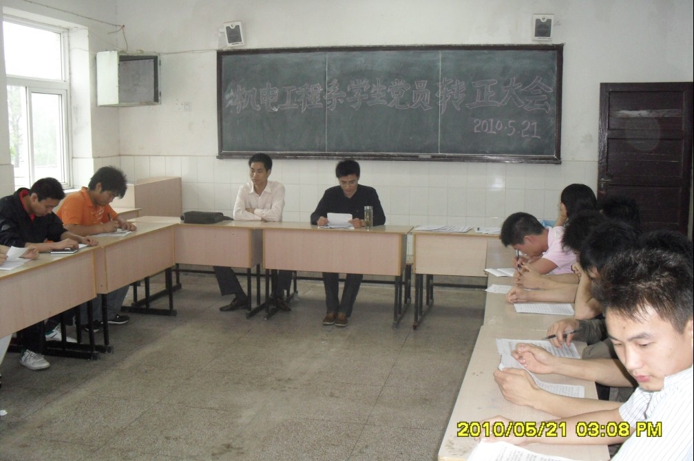 依据《beat365唯一官方网站党员发展工作实施细则》,我系于 5月21日下午在1号楼206教室召开了机电工程系2010年上半年学生党员转正会议。会议由系主任辅导员罗威老师主持,学生党支部史媛芳、张红军两位老师参加了会议。本期拟转正学生党员共20名,其中实际按期转正13名,延期转正4名。拟转正学生党员分别就自己在预备期内的成长感受和思想情况作了总结和汇报,并表明了自己对转正以后会继续保持先进模范作用的决心,最后,参会老师对本期拟转正学生党员提出了要求和希望。